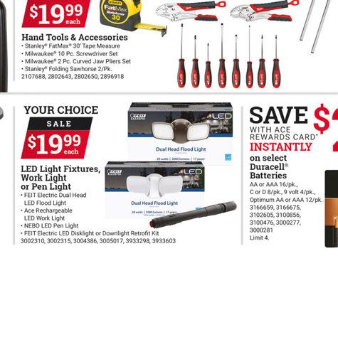 111 Whittlesey Avenue • Norwalk 419-668-4223 M-F 8-7 • Sat 8-5 • Sun 10-5 SHOP ONLINE at WWW.ACEHARDWARE.COM NORWALKHARDWARE ACE MANY MORE ITEMS ARE ON SALE. COME CHECK US OUT!