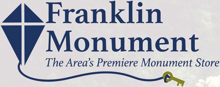 Located at 39 Woodlawn Ave. Norwalk, Ohio www.franklinmonument.com • Visit us on Facebook! We are so grateful for your support over the last year! May you and yours enjoy a blessed Thanksgiving. • Etchings • Benches • Financing • Large color selection • In-home consultations • Large showroom • Handicap accessible OPEN M-Th 9-5, Fri 9-3:30, Saturdays & evenings by appointment 419-663-7866 Visit our website for ideas, and know that we can create something unique to honor and remember. See our selection of above-ground columbariums!