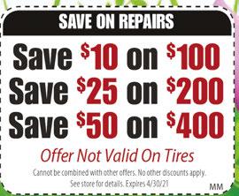 $10 OFF!!! $10OFF!!! expires 9/30//21 ALL OIL CHANGES ALLOILCHANGES cannot be combined with with any other offer expires 9/30/21 expires 9/30//21 cannot be combined with with any other offer C H E C K U S O U T A T O N E O F O U R 1 0 L O C A T I O N S CHECKUSOUTATONEOFOUR10LOCATIONS !! REPAIRS REPAIRS INCLUDESFREETIRE ROTATION! cannot be combined with with any other offer $79.95 $79.95 expires 9/30/21 cannot be combined with with any other offer ALIGNMENT PACKAGE ALIGNMENTPACKAGE 4TIREBALANCE 4WHEELALIGNMENT $40 SAVINGS! $40SAVINGS! N I C K S S , " O NICKSAYS,"YOUU G O T T C H O O S GOTTACHOOSEE T H E R I G H T S H O E S ! THERIGHTSHOES!"" I N F O O T B A L L , Y O U H A V E T O INFOOTBALL,YOUHAVETO C H O O S E T H E R I G H T S H O E S T O P L A Y CHOOSETHERIGHTSHOESTOPLAY T H E G A M E THEGAME.. A T V A N ' S , W E H E L P Y O U ATVAN'S,WEHELPYOU C H O O S E T H E R I G H T T I R E S T H A T F I T CHOOSETHERIGHTTIRESTHATFIT Y O U R D R I V I N G N E E D S ! YOURDRIVINGNEEDS! M E D I N A MEDINA 3 3 0 - 2 3 9 - 2 3 7 1 330-239-2371 1 4 5 1 M E D I N A R D 1451MEDINARD W A D S W O R T H WADSWORTH 3 3 0 - 3 3 6 - 6 6 3 0 330-336-6630 1 8 5 B R O A D S T 185BROADST W A T E R L O O R D WATERLOORD 3 3 0 - 7 2 4 - 7 4 0 0 330-724-7400 4 4 9 E W A T E R L O O R D / A K R O N 449EWATERLOORD/AKRON M A N S F I E L D MANSFIELD 4 1 9 - 5 2 9 - 0 8 6 5 419-529-0865 8 0 1 L E X I N G T O N A V E 801LEXINGTONAVE E L L E T ELLET 3 3 0 - 7 8 4 - 7 7 4 0 330-784-7740 6 8 2 C A N T O N R D / A K R O N 682CANTONRD/AKRON I B E R I A IBERIA 4 1 9 - 4 6 8 - 1 7 7 7 419-468-1777 3 5 9 6 S T A T E R O U T E 3 0 9 3596STATEROUTE309 E . M A R K E T S T E.MARKETST 3 3 0 - 7 8 4 - 5 4 5 4 330-784-5454 1 7 2 5 E M A R K E T S T / A K R O N 1725EMARKETST/AKRON N . R I D G E V I L L E N.RIDGEVILLE 4 4 0 - 3 2 7 - 7 0 1 0 440-327-7010 3 7 7 7 5 C E N T E R R I D G E R D 37775CENTERRIDGERD CUYAHOGA FALLS CUYAHOGAFALLS 330-794-5263 330-794-5263 4005 STATE RD 4005STATERD N O R W A L K NORWALK 4 1 9 - 6 7 7 - 0 6 5 5 419-677-0655 2 8 7 4 S T A T E R O U T E 6 1 2874STATEROUTE61 $40 OFF $40OFF PERAXLE $100 OFF $100OFF BRAKE SPECIAL BRAKESPECIAL BOTHAXLES