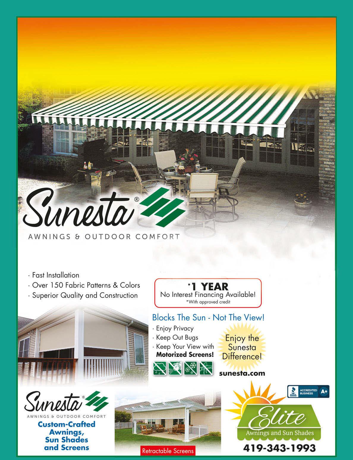 $750 OFF ANY AWNING PLUS FREE Wireless Remote Elite Awnings • 419-343-1993 With TMS coupon. Not valid with other offers. Exp. 5/30/21 Lifetime Warranty** ** See Sunesta.com for details AMERICAN BUILT RECOMMENDED Home & Condo Exact Fit! with your tax return or stimulus check Call today for a FREE Quote! Invest in some SHADE... CreateYourShade.com Enjoy the SUNESTA Difference!