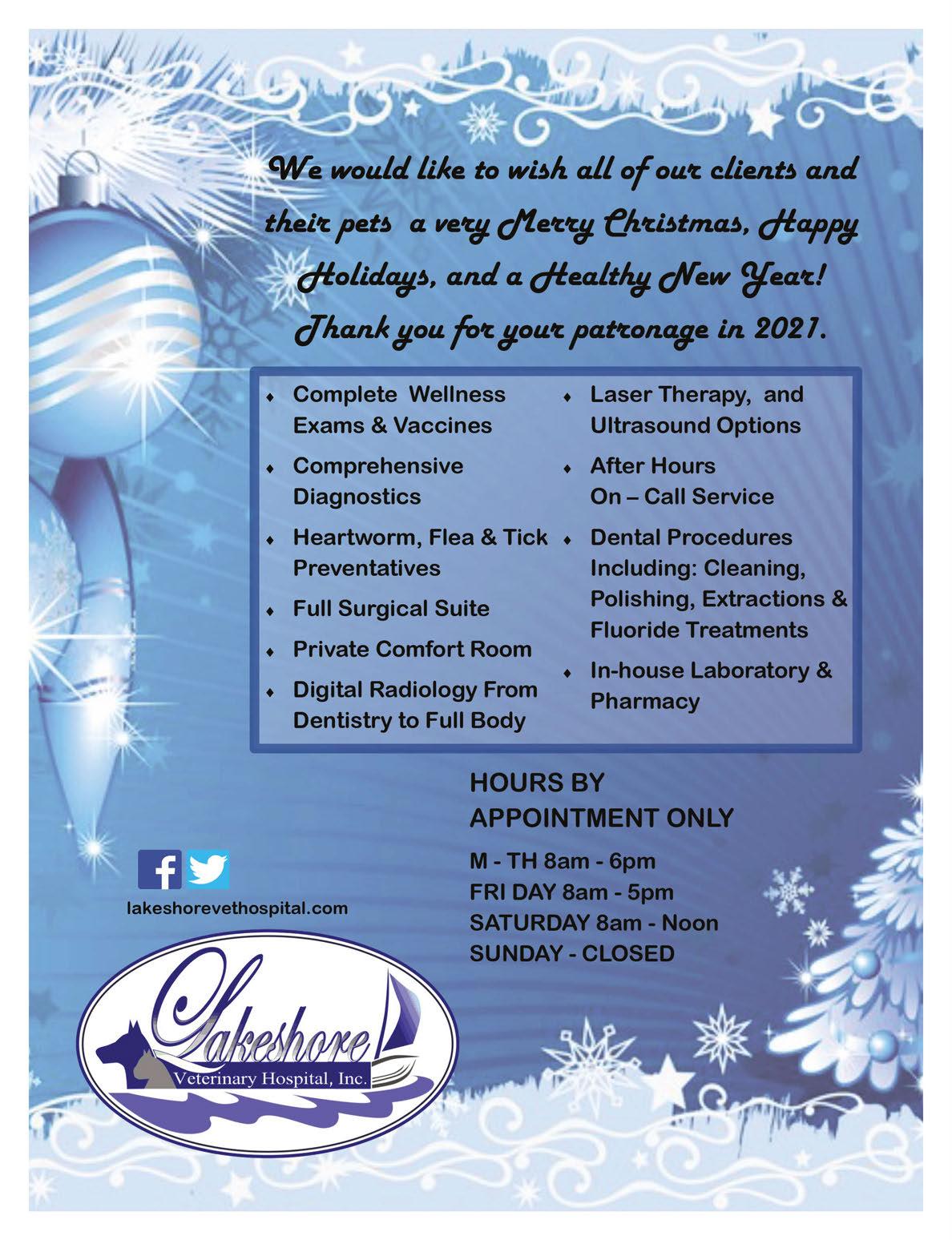 DAILY Lunch & Dinner SPECIALS Carry-out Available Commodore Denig Post No. 83 American Legion 3615 S. Hayes Ave. • Sandusky, OH 44870 • 419-625-3274 Visit our Website: sanduskyamericanlegion83.com Dining Room OPEN TO THE PUBLIC! • Breakfast, Lunch, & Dinner • Great Food! • Full Banquet Facilities Available for Members & Non-Members ENTERTAINMENT ★ Check Our Website ★ “For God and Country We Associate Ourselves Together” HOURS of OPERATION Monday & Tuesday 8am-9pm Wednesday & Thursday 8am-10pm Friday & Saturday 8am-11pm Sunday 8am-7pm (Hours subject to change) BINGO! Every Monday & Thursday Doors open at 5pm; Early Bird starts at 6:30pm. Happy Holidays! WE BUY JUNK VEHICLES TOP DOLLAR PAID FOR ALL METAL! CARS $450 & Up SUVs & MINIVANS $500 & Up Full Size TRUCKS & VANS $600-$900 OPEN M-F 8-5 • SAT 8-12 * Must have title. 419-668-2425 US METAL RECYCLING FREE HAULING! We come to you! ...formerly Star Lanes ★ Restaurant ★ FULL BAR! We clean & sanitize frequently 24 LANES PLUS HANDICAP LANES! State-of-the-art scoring BIRTHDAY PARTIES SUPER DEAL $20 OFF Party of 8 or more. Includes bowling, pizza, and pop. With this ad. Expires 01-20-22. 2097 Cleveland Rd. • Sandusky • www.twinstarcenters.com 419-626-2413 — BOWLING — BUY 1 GAME, GET 1 GAME FREE With this ad. Expires 01-20-22. Book Your HOLIDAY PARTIES NOW!