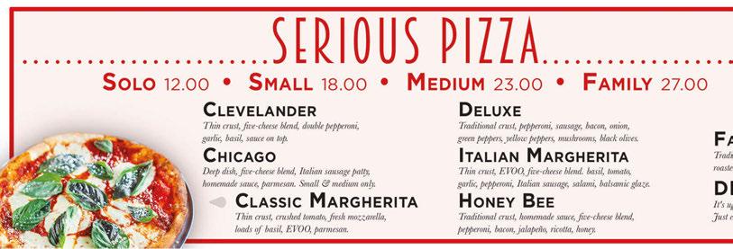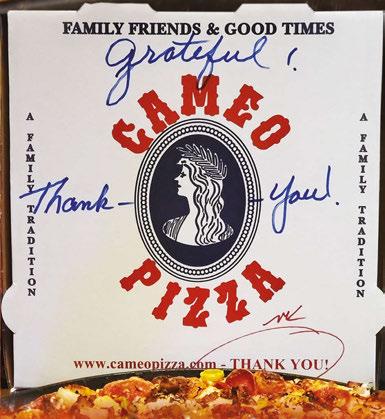ORDER ONLINE. IT’S TOO EASY! TRY OUR NEW CAMEO PICKLE BREAD! FAMILY PAK #1: 2 Lg. 2-topping pizzas & a small cheesybread $32.95 FAMILY PAK #2: Lg. 2-topping pizza, small Cheesybread, & breadsticks $21.99 SUPER PAK: 3 Lg. 1-topping pizzas & a medium Cheesybread $44.99 KIDS’ PAK: Lg. 1-topping pizza, cheese sticks, & Cinnabread $21.99 2 sm. 2-topping pizzas $15.95 Med. 2-topping pizza $9.99 Sub or Wrap 2 for $11.99 Lg. 2-topping pizza 6 boneless wings $19.95 Lg. 2-topping pizza $13.99 Med. specialty pizza $13.99 2 Lg. 2-topping pizzas $28.95 for 85 years Since 1936 SANDUSKY 419-626-0187 HURON 419-433-0811 NOW OPEN! EXXON MOBIL 419-616-4444 OPEN DAILY DAILY SPECIALS SANDUSKY DINE-IN SPECIALS Your choice of 1/2 OFF CHEESYBREAD —or— CINNABREAD —or— PICKLE BREAD with purchase of a medium or large pizza at regular price. $3 Chocolate Chip Cookie $4 Cinnabread Dine-in Specials only available Sunday thru Thursday. SANDUSKY HOURS: Sun-Thurs 4-8 Fri-Sat 4-9
