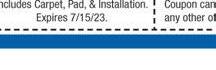 Mon & Fri 8:30-5 Tues-Thurs 8:30-4 Sat 9-Noon “Like us” on Visit our website at www.balduffs.com for all your floor covering and carpet cleaning needs. Minumum 2 areas of carpet cleaning. Areas over 250 sq ft of carpet considered a separate area. Must present coupon to receive this price. Tax not included. Cannot be combined with other discounts. Offer valid for one visit only. Expires 07-13-23. Balduff’s ONE ADDITIONAL AREA $1 77 E. Main St. • Norwalk 419-668-4665 Toll Free 1-800-423-1310 CARPET CLEANING TILE CLEANING FURNITURE CLEANING DUCT CLEANING CARPET CLEANING $199 Must present coupon to receive this price. Tax not included. Areas over 250 sq ft of carpet considered a separate area. Tax not included. Cannot be combined with other discounts. Offer valid for one visit only. Expires 07-13-23. Balduff’s FIVE AREAS & A HALL “We take pride in what you stand on.” MOHAWK 2023 NATIONAL WAREHOUSE SPECIAL ON NOW! • CARPET 3000 yards2 starting at 99¢/sq. ft. • LUXURY PLANK FLOORING Over 15,000 square feet of glue down and floating available, starting at $1.25/sq. ft. • 10mm Laminate in stock starting at $2.85/sq. ft. All Pet is the ONLY CARPET PROTECTION & WARRANTY for all pets, all accidents, all the time! 419-625-4242 419-625-4242 With coupon. Not valid with any other offers. Expires 07-12-23. $5 OFF your $50 purchase 1202 W. Washington St. (Rt. 6) • Sandusky • 419-625-4242 • www.ab-hc.com With coupon. Not valid with any other offers. Expires 07-12-23. $15 OFF your $100 purchase Our electric bikes make great gifts.