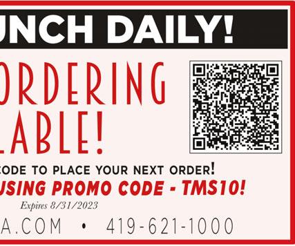 FIRST LOCATION IN NORTHERN OHIO 18 S. MAIN • MONROEVILLE 419-465-6007 UNIQUELY DIFFERENT DRESSES • SWEATERS • JEANS • HATS • HANDBAGS • CUSTOM MADE JEWELRY • ALL SIZES • GREAT PRICES OPEN Tues-Fri 11-6 Saturday 9-4 CLOSED Sun & Mon SUMMER SHOPPING SEASON IS HERE! What are YOU wearing? Summer Dresses • T’s & Tanks Shorts • Summer Pants • Sandals Jewelry • ...and so much more! WATCH FOR SALES! elgrandpatron.com “WE USE ONLY FRESH INGREDIENTS!” 10% OFF Your Total Bill $10 minimum purchase. Cannot be used with other offers. With coupon. One coupon per table. Excludes tax. Expires 07-13-23. FREE Wifi Everyday Drink & Meal Specials Available! Mon-Thurs 11am - 9pm Fri 11am - 10pm • Sat 12-10pm CLOSED Sunday 1007 W. Perkins • Sandusky, OH • 419-609-0875 WE TAKE RESERVATIONS We now deliver using DoorDash! Margaritas, too! With coupon. Expires 07-13-23. Buy $100 in gift cards, get $20 FREE! 88 oz. $29.99