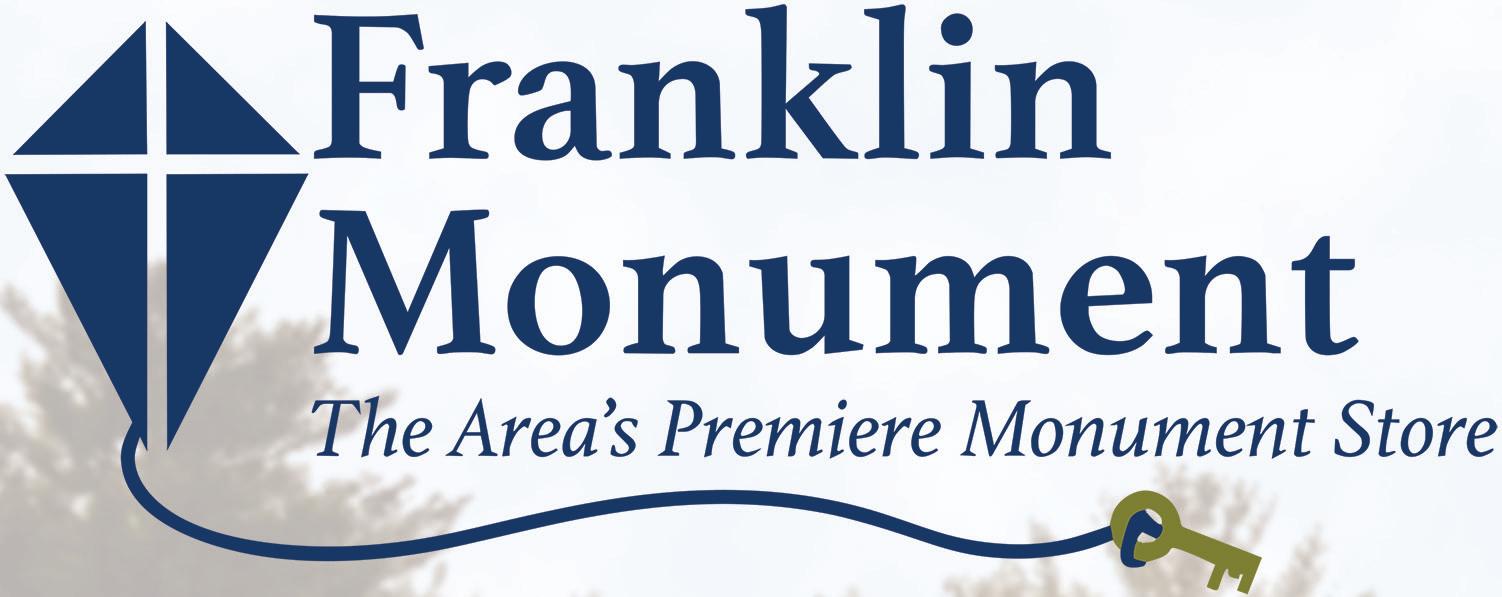 Located at 39 Woodlawn Ave. Norwalk, Ohio www.franklinmonument.com • Visit us on Facebook! With our customized monuments, the biggest parts of your life can also be a big part of your memory. • Etchings • Benches • Financing • Large color selection • In-home consultations • Large showroom • Handicap accessible OPEN M-Th 9-5, Fri 9-3:30, Saturdays & evenings by appointment 419-663-7866 We promise: We’ll take the time and use our skills to honor your loved one as you intend. Visit our website for ideas, and know that we can create something unique to honor and remember.