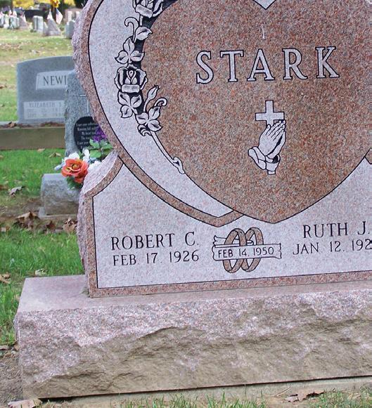 39 Woodlawn Avenue • Norwalk www.franklinmonument.com • Visit us on Facebook! 419-663-7866 OPEN M-Th 9-5, Fri 9-3:30 Saturdays & evenings by appointment Love is eternal; its memory is precious! • Pre-Planning • Estate Planning • Custom-made Items • Etchings • Benches • Financing • Large color selection • In-home consultations • Large showroom • Handicap accessible We won’t forget that, any more than you will. See our selection of above-ground columbariums!