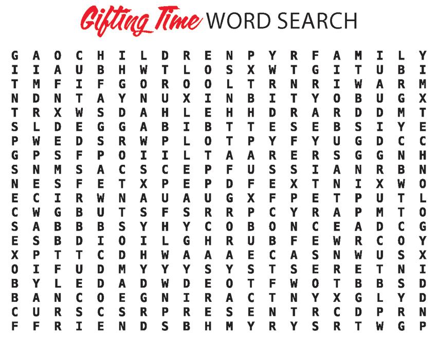 Mail all entries to: 4243 Secrest Rd. Wooster Ohio 44691 Upon entry submission, winning participants automatically authorize publication of their name in the following issue of Town Money Saver. Winners will be contacted via USPS Mail. Winning entries will be drawn from correct entries received on or before Dec. 15, 2021. Photos copies are acceptable & multiple entries can be mailed in the same envelope. Only one entry per person will be accepted. Good Luck! Name ________________________________________ Ph.# _________________________________________ Address _____________________________________ WIN A $ 25 GIFT CARD DAIRY QUEEN, ROMEOS PIZZA OR ASIAN WOK! OCT. WINNERS: Donna M. Rowan - $25 DQ card Melanie Burdine - $25 Romeos Casey Walker - $25 Asian Wok BAGGED BOXES CARING CHILDREN CLOTHING FAMILY FRIENDS GIFT HIDDEN HOBBIES INTERESTS LIST PRESENT PURCHASE RECIPIENT SANTA SECRET TAPE TECHNOLOGY TISSUE PAPER TOYS WRAPPING 330 -804 -2277 NICE CLEAN CARS FROM $2,000-$12,000 mainstreamautosales.com 330 . 804 . 2277 6819 Cleveland Rd • Wooster • Open M-F 10-5, Sat By Appt.