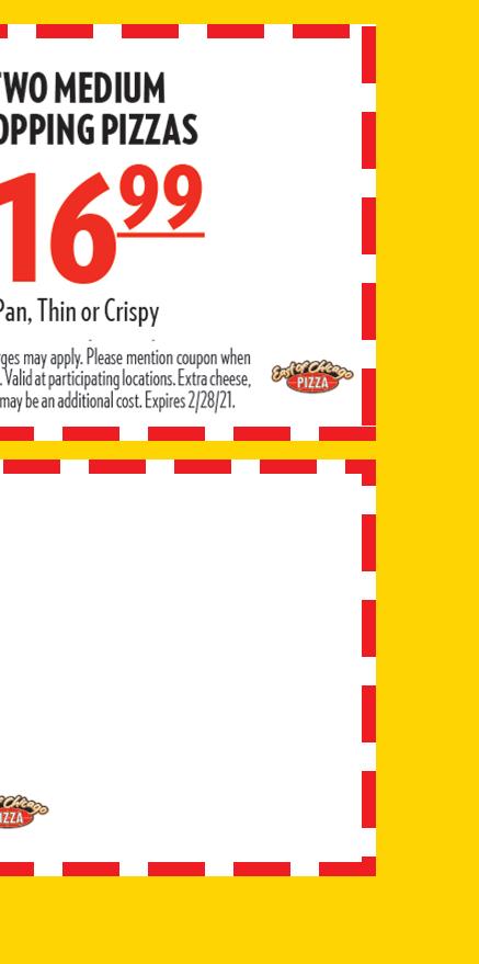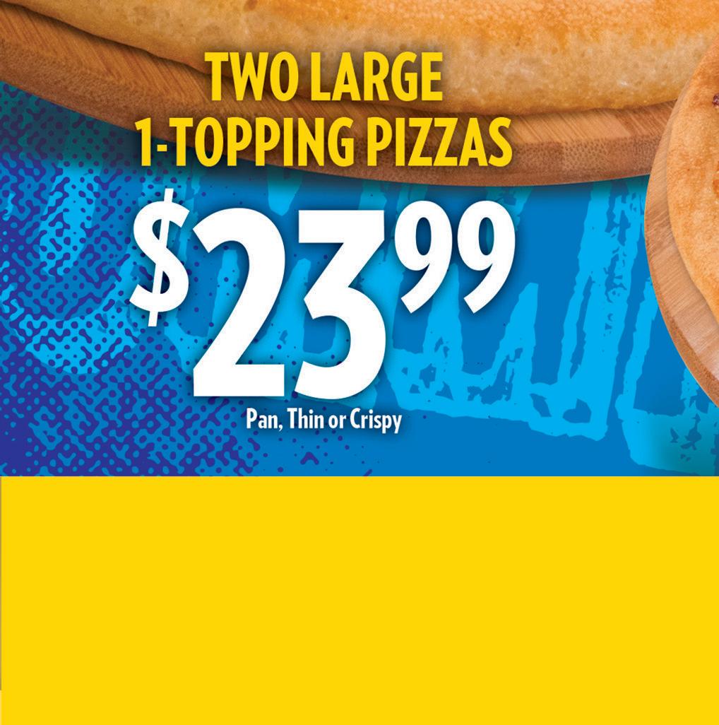 Full Sheet 1-Topping Pizza PLUS 25pc. Chicken $6995 • Full Sheet 1-Topping Pizza • 16pc. Chicken • 50 Boneless or 30 Bone-In Wings $9995 50pc. Chicken, 75 Jo-Jo Potatoes Full Sheet 1-Topping Pizza Full Pan of Salad (Dressing Not Included) Full Pan of Rigatoni (Add 40 Meatballs for $20) $209.95 Please give us much notice as possible Medium Cheese Pizza, 8pc. Chicken, 15 Jo-Jo Potatoes, 12oz Coleslaw & $2999 THE MINI PARTY PACK THE PARTY PACK 440-878-9999. Please mention when ordering. Expires 5/31/22 25pc. Chicken 50 Jo-Jo Potatoes Full Sheet 1-Topping Pizza 1/2 Pan of Salad (Dressing Not Included) 1/2 Pan of Rigatoni (Add 20 Meatballs for $10) $139.95 THE SMALL PARTY PACK 2 Large 1-Topping Pizzas $2999 440-878-9999. Please mention when ordering. Expires 5/31/22 440-878-9999. Please mention when ordering. Expires 5/31/22 440-878-9999. Please mention when ordering. Expires 5/31/22 440-878-9999. Please mention when ordering. Expires 5/31/22 440-878-9999. Please mention when ordering. Expires 5/31/22 440-878-9999. Please mention when ordering. Expires 5/31/22 440-878-9999. Please mention when ordering. Expires 5/31/22 440-878-9999. Please mention when ordering. Expires 5/31/22 440-878-9999. Please mention when ordering. Expires 5/31/22 440-878-9999. Please mention when ordering. Expires 5/31/22 PIZZA & CHICKEN COMBO PIZZA BOGO Buy an Extra Large with Whatever Toppings You Want Get a Medium Cheese Pizza for FREE 11pc. Chicken 11 Jo-Jo Potatoes $1777 Guaranteed 2 Breasts, 2 Thighs, 2 Wings, 2 Legs PLUS 3 Bonus Pieces of Whatever we have Extra 11 & 11 Medium 3-Topping Pizza, PLUS 1 Pound of Wings $2499 PIZZA & WING COMBO Medium 1-Topping Pizza 15 Jo-Jo Potatoes 8pc. Chicken 1/2 Slab Ribs, 1lb Wings & 12oz Coleslaw 4 Rolls with Honey Butter $4995 THE AWESOME COUPON Full Slab Ribs 15 Jo-Jo Potatoes Beer Battered Onion Rings Coleslaw 4 Rolls with Honey Butter $2999 Add a Full Slab $19.99 Add a 1/2 Slab $10.99 Add 6 Breaded Shrimp $7.99 FULL SLAB RIB DINNER