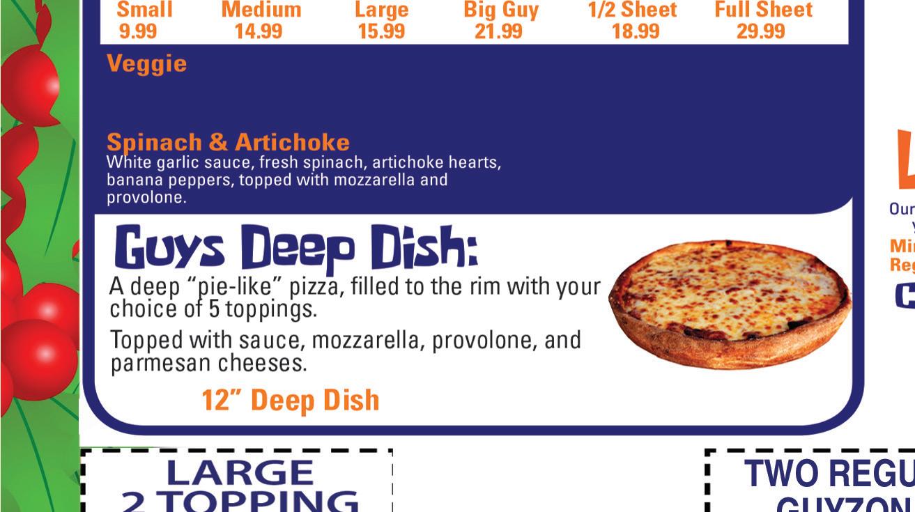 Fresh mushrooms, onions, green peppers, banana peppers and black olives, covered with mozzarella and provolone. Or choose any 5 veggies.