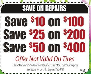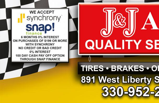 With this TMS coupon. Not valid with other offers or prior purchases. Offer expires 8/30/21 With this TMS coupon. Not valid with other offers or prior purchases. Offer expires 8/30/21 With this TMS coupon. Not valid with other offers or prior purchases. Offer expires 8/30/21 With this TMS coupon. Not valid with other offers or prior purchases. Offer expires 8/30/21 FREE Service Call with any repair over $59 ROLLER REPLACEMENT with any broken spring repair (a $50+ value) $50 Off $100 Off Double Door with a Clopay Intellcore Door Purchase FREE Lube & Tune 25 point inspection of your door and opener with any repair over $59 Senior Citizen Discount Available Hours: Mon - Fri 9-5pm • Sat 9am-2pm Starting at $69.99 GET NEW TIRES FOR TODAY AND WORRY ABOUT PAYING LATER! ASK ABOUT RECEIVING AN ADDITIONAL INSTANT $100 OFF NO WAITING FOR REBATES! LIFETIME TIRE ROTATION & BALANCE CHECKS with Any Tire Purchase LIFETIME BRAKE SPECIAL $100OROFF SAVE Per Axle $250 OFF Both INCLUDES LIFETIME PREMIUM CERAMIC BRAKE PADS, NEW HARDWARE, CALIPERS ARE CLEANED AND LUBRICATED J&J Auto Cannot combine any of these offers. Must mention or bing in Ad! EXPIRES 7/15/21 J&J Auto Cannot combine any of these offers. Must mention or bing in Ad! EXPIRES 7/15/21 OIL CHANGE SPECIAL $20 OFF AND 2 FRONT WIPER BLADES While supplies last. Up to 6qts Full Synthetic Oil. INCLUDES TIRE ROTATION, TOP OFF FLUIDS, BATTERY, STARTING AND CHARGING SYSTEM TEST, BRAKE INSPECTION J&J Auto Cannot combine any of these offers. Must mention or bing in Ad! EXPIRES 7/15/21 $0 DOWN J&J Auto Cannot combine any of these offers. Must mention or bing in Ad! EXPIRES 7/15/21 MUFFLERS Starting at $99.99 J&J Auto Cannot combine any of these offers. Must mention or bing in Ad! EXPIRES 7/15/21 With Free Installation J&J Auto Cannot combine any of these offers. Must mention or bing in Ad! EXPIRES 7/15/21 SLIDING SCALE SAVE $10 ON $100 $20 ON $200 $35 ON $300 $50 ON $400 Not Valid on Tires A portion of every sale gets donated to St. Jude’s! + Free Exhaust Inspection