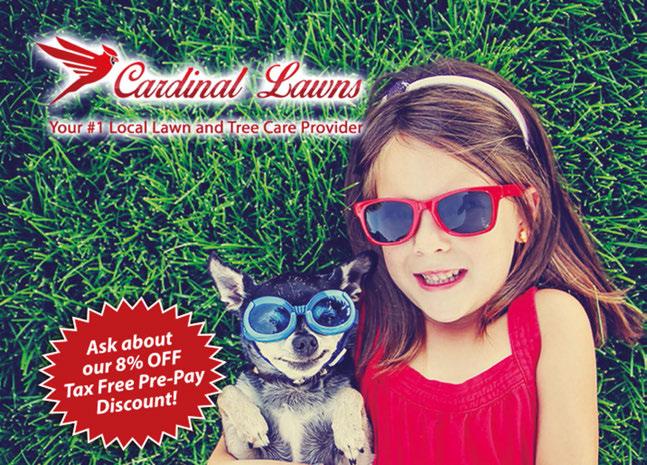 We’ll Take Care of your Lawn Just like It’s Our OWN “Technician is very considerate” Helen B. “Cardinal Lawns did a fabulous job this year. It’s only our second year but the grass looks much better than it ever has in the 12 years we lived here. Can’t wait til you return” Mike W. We also offer these additional services: • Insect & Grub Control • Pest & Mosquito Control • Tree & Shrub Care • Core Aeration • Seeding, Lawn Renovation, Slice Seeding • Mole Control NEW CUSTOMER SPECIAL $25 OFF Any Program You Choose + 2 Free Soil Applications Mosquito Treatment w/ Basic Program Up to 10,000 sq. ft. New customers only. Valid only w/ 6 Application Mosquito Program. Not valid with any other offers. Expires 7/15/21. For your convenience, our services are continual. New customers only. Not valid with any other offers. Expires 7/15/21. For your convenience, our services are continual. FREE Scan to View Website Call (330) 208-9713 www.cardinallawns.com RESIDENTIAL & COMMERCIAL FLOORING 330-952-1046 Serving Medina County Since 1997 EmeraldFinishingGroup.com Polyaspartic Flake System • 1 Day Installation • Lifetime Warranty • FREE ESTIMATES