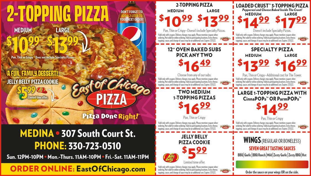 The Biggest Round Pizza in Northeast Ohio! A huge 24” round pizza, that any New Yorker would love. We slice this colossal pie into 8 huge slices(each slice is over a foot long).