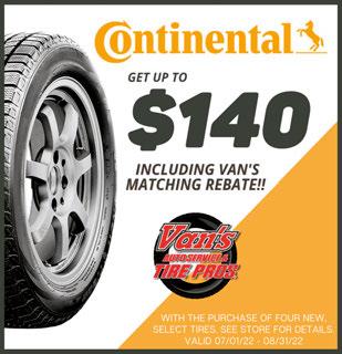 CAN'TBEBEAT...ONBRANDSYOUKNOWANDTRUST! 185/65R15 195/60R15 195/60R15 195/65R15 215/70R15 235/75R15 205/55R16 205/55R16 205/60R16 205/65R16 205/70R16 215/55R16 215/60R16 215/60R16 215/65R16 225/60R16 225/65R16 235/70R16 LT245/75R16 215/55R17 215/60R17 225/50R17 225/55R17 225/60R17 225/65R17 225/65R17 225/65R17 235/50R17 65K 55K 50K 55K 50K 50K 55K 50K 55K 65K 70K 55K 55K 65K 65K 55K 65K 55K 50K 55K 65K 65K 55K 55K 55K 65K 80K 40K $65 $70 $80 $70 $75 $85 $85 $95 $80 $95 $100 $95 $90 $100 $95 $90 $100 $110 $150 $95 $115 $110 $100 $95 $100 $125 $135 $100 55K 55K 50K 50K 60K 55K 50K 50K 50K 65K 55K 50K 50K 70K 50K 50K 60K 60K 60K 50K 50K 70K 50K 55K 70K 55K 60K 50K $100 $120 $140 $125 $150 $125 $110 $125 $115 $120 $130 $125 $130 $150 $150 $150 $170 $185 $175 $200 $135 $150 $185 $150 $175 $160 $170 $165 TireSizeBrandMileagePriceEach* TireSizeBrandMileagePriceEach* *Pricesarepertireanddoesnotincludeinstallation. Thesepricesvalidthrough7/31/22.**Plustaxes&fees. FREE FREE LOANERS! LOANERS! (SubjecttoAvailability) (SubjecttoAvailability) CHECK US OUT T ONE OF OUR 12 CON ENIENT LOC TIONS! CHECKUSOUTATONEOFOUR12CONVENIENTLOCATIONS!