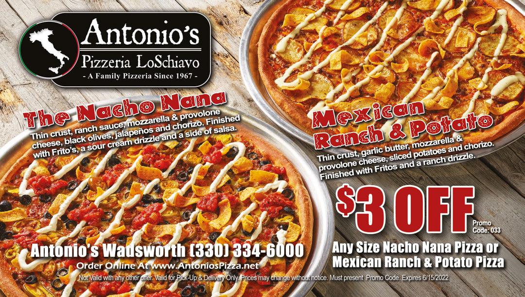 www.pizzaziospizzawadsworth.com • pizza44281.com www.pizzaziospizzawadsworth.com • pizza44281.com • www.pizzaziospizzawadsworth.com • pizza44281.com www.pizzaziospizzawadsworth.com • pizza44281.com • www.pizzaziospizzawadsworth.com • pizza44281.com • www.pizzaziospizzawadswor th.com www.pizzaziospizzawadsworth.com • pizza44281.com • www.pizzaziospizzawadsworth.com • pizza44281.com www.pizzaziospizzawadsworth.com • pizza44281.com • www.pizzaziospizzawadsworth.com • pizza44281.com • www.pizzaziospizzawadswor th.com Sorry No Checks. Use Your Check Debit Card Order from Our Menu Online *Premium Toppings are extra charge. (Toppings in coupon/specials are regular toppings only) Expires 5-26-22 TMS43 TMS35 TMS44 $5 Anytime Menu $6 Anytime Menu $8 Anytime Menu DEBIT Expires 5-26-22 Expires 5-26-22 TMS46 Expires 5-26-22 TMS48 TMS47 For Deliveries Outside of Wadsworth NOW ACCEPTING CASH FOR ONLINE ORDERS WACKY WEDNESDAY $7.00 $6.00 TMS39 157 Broad St. • Wadsworth (carryout or delivery) $2.00 Delivery ($7.00 Minimum Food Order for Delivery) PIZZA DEAL OPEN 10:30AM-9:00PM EVERYDAY Pick-Up Only Medium 1-Topping Pizza Medium Cheese Pizza EVERYDAY TMS45 TMS40 TMS41 PLEASE MENTION CODE WHEN ORDERING Footlong Sub & Small Fries $9.99 TMS42 PIZZA & WING DEAL X-Large 2-Topping Pizza & 18 Boneless Wings $29.99 FOLDOVER DEAL Medium Foldover & Medium 1-Topping Pizza $25.99 FOLDOVER DEAL Large Foldover & Small Cheesy Bread $29.99 PIZZA & TENDERS DEAL X-Large 1-Topping Pizza & Full Loaf of Garlic Bread with Cheese $19.99 PIZZA & TENDERS DEAL X-Large 1-Topping Pizza & 8pc Tenders & JoJo’s $27.99 PIZZA DEAL Expires 5-26-22 Expires 5-26-22 Add $1.00 Each Philly Steak/Chicken Ranch Not available with Fish PIZZA DEAL Small 3-Topping Pizza $9.99 SUB DEAL Medium Foldover & Full Loaf of Garlic Bread with Cheese $19.99 Expires 5-26-22 TMS34 FOLDOVER DEAL X-Large 1-Topping Pizza & Small Foldover $24.99 For Our Best Specials & Faster Service: Order Online NO LIMIT TMS37 TMS38 • Pasta with Marinara & Cheese • Full Loaf of Garlic Bread w/Cheese • 6 Boneless Wings • 6 Jalapeno Cheddar Poppers • 8 Boneless Wings • 5 pc Fish Sticks & Fries • 10 Nuggets, 1 Dipping Sauce & Fries • Large French Fried Mini Tacos • 6” Chicken Ranch Sub • 6” Philly Steak Sub • 6” Cod Fish Sub • 2pc Cod Fish & Fries • 7pc Fish Sticks & Fries • Chicken Alfredo • Small Garden Salad TMS33 NO LIMIT Expires 5-26-22 Expires 5-26-22 Expires 5-26-22 Expires 5-26-22 Expires 5-26-22 Expires 5-26-22 Add $2.00 Each Philly Steak/Chicken Ranch/Gyro Expires 5-26-22 Expires 5-26-22 PIZZA DEAL Medium 2-Topping Pizza $11.99 NO LIMIT TMS36 X-Large Pizza $14.99 1-Topping $16.99 2-Topping NO LIMIT PIZZA & BREAD DEAL Medium 1-Topping Pizza & Medium Cheesy Bread $19.99 Cheese Sheet Pizza $24.99 SHEET DEAL Additional toppings $5.00 each. Half Topping $2.50 1-Topping Sheet Pizza $29.99 SHEET DEAL Additional toppings $5.00 each. Half Topping $2.50 HAVE IT ALL DEAL X-Large 1-Topping Pizza & Small Cheesy Bread & 10 Boneless Wings $29.99