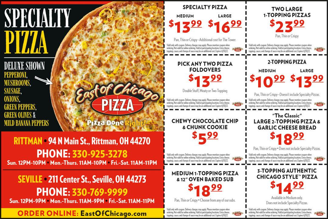 330-334-9191 • www.gioninos.com 138 Akron Rd. • Wadsworth • (Serving Wadsworth & Sharon Twp.-up to Rt. 18) Delivery Available • $10 Minimum Order • Limited Area GIONINO’S PIZZERIA Coupon expires 5-25-2022. Not valid with any other offer. Valid only at Wadsworth location. TMS GIONINO’S PIZZERIA Coupon expires 5-25-2022. Not valid with any other offer. Valid only at Wadsworth location. TMS GIONINO’S PIZZERIA Coupon expires 5-25-2022. Not valid with any other offer. Valid only at Wadsworth location. TMS GIONINO’S PIZZERIA Coupon expires 5-25-2022. Not valid with any other offer. Valid only at Wadsworth location. TMS GIONINO’S PIZZERIA Coupon expires 5-25-2022. Not valid with any other offer. Valid only at Wadsworth location. TMS GIONINO’S PIZZERIA Coupon expires 5-25-2022. Not valid with any other offer. Valid only at Wadsworth location. TMS GIONINO’S PIZZERIA (Excludes Steak) Coupon expires 5-25-2022. Not valid with any other offer. Valid only at Wadsworth location. TMS GIONINO’S PIZZERIA Coupon expires 5-25-2022. Not valid with any other offer. Valid only at Wadsworth location. TMS GIONINO’S PIZZERIA Coupon expires 5-25-2022. Not valid with any other offer. Valid only at Wadsworth location. TMS GIONINO’S PIZZERIA Coupon expires 5-25-2022. Not valid with any other offer. Valid only at Wadsworth location. TMS GIONINO’S PIZZERIA Coupon expires 5-25-2022. Not valid with any other offer. Valid only at Wadsworth location. TMS GIONINO’S PIZZERIA Coupon expires 5-25-2022. Not valid with any other offer. Valid only at Wadsworth location. TMS FREE Small 1-Item Pizza with Purchase of A Large Specialty Pizza Large 16” 2-Item Pizza Only $1695 Medium 12” Pizza With 2-Items Only $1195 Large 16” 1-Item Pizza, 12 Wings (Jumbo Reg. or Boneless) Plus FREE Garlic Bread Only $2795 Any 2 Subs Only $1700 Includes 2 Orders of JoJo’s 2 Medium 12” Pizzas With 1-Item Each Only $2095 Add a pint of cole slaw for $1.95 Large 16” 1-Item Pizza Only $1495 2 Large 16” Pizzas With 1-Item Each Only $2895 Grizzly Feast Large 16” 2-Item Pizza & 12pc. Chicken & JoJo’s Only $3695 Add a pint of cole slaw for $1.95 No Substitutions Mixed or All Dark Junior Grizzly Feast Medium 12” 2-Item Pizza & 8pc. Chicken & JoJo’s Only $2695 Add a pint of cole slaw for $1.95 No Substitutions Mixed or All Dark Add a Box of JoJo’s for $600 Sheet 1-Item Pizza Only $2495 24 hr. Notice GIONINO’S PIZZERIA Coupon expires 5-25-2022. Not valid with any other offer. Valid only at Wadsworth location. TMS GIONINO’S PIZZERIA Coupon expires 5-25-2022. Not valid with any other offer. Valid only at Wadsworth location. TMS Lunch Special 11am to 3pm Medium 1-Item Pizza Only $1000 (Pick-up Only) Open For Delivery or Pick-Up Chicken Special 12 Mixed Chicken with JoJo’s Only $1995 Wing Special Large 16” 1-Item Pizza & a Box of JoJo’s Only $2295 No Substitutions Add a Pint of Cole Slaw for $195 GIONINO’S PIZZERIA Coupon expires 5-25-2022. Not valid with any other offer. Valid only at Wadsworth location. TMS GIONINO’S PIZZERIA Coupon expires 5-25-2022. Not valid with any other offer. Valid only at Wadsworth location. TMS $400 (Add Grilled Chicken for $200) $2500 24 Boneless $1995 No Substitutions Tossed Side Salad GIONINO’S PIZZERIA Coupon expires 5-25-2022. Not valid with any other offer. Valid only at Wadsworth location. TMS $600 9” Chocolate Chunk Cookie Pie GIONINO’S PIZZERIA Coupon expires 5-25-2022. Not valid with any other offer. Valid only at Wadsworth location. TMS Buy a Large G-Mac-N-Cheese Pizza Receive a FREE TOPPING Treat Mom to Something Sw t this Mother’s Day