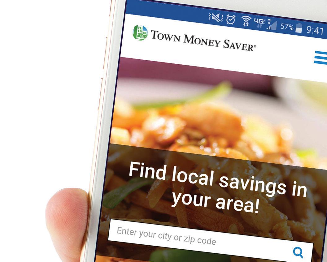 Local advertising made easy. Attract repeat customers. Grow your business. Contact Karen for more information. 330.802.0290 | tmskaren@gmail.com EFFECTIVE | AFFORDABLE | CONVENIENT | TARGETED townmoneysaver.com/advertise MAGAZINE ADS DIGITAL PACKAGE | • Business profile and printable coupon listings on the TMS website • Listing on the TMS mobile app • Promotion on the local TMS Facebook page PREMIUM PRODUCTS • Individual Inserts • Stand-Alone Postcards • Menus, Door Hangers & More