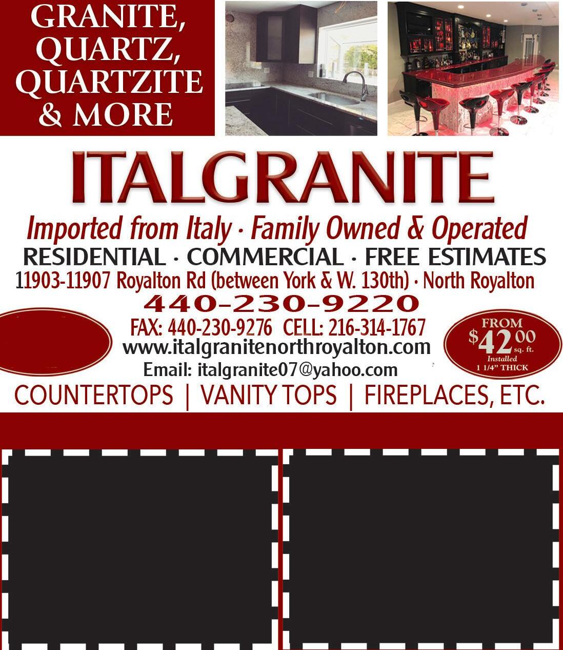 ANY FOOD PURCHASE OVER $30 EXPIRES 3/3/22. NOT TO BE COMBINED WITH ANY OTHER OFFER. ANY FOOD PURCHASE OVER $60 EXPIRES 3/3/22. NOT TO BE COMBINED WITH ANY OTHER OFFER. with purchase of granite or quartz Kitchen countertop 45 sq. ft. or more Valid only with coupon. Not valid with any other coupons or discounts. Expires 3/15/22 with purchase of granite or quartz Kitchen countertop 75 sq. ft. or more Valid only with coupon. Not valid with any other coupons or discounts. Expires 3/15/22 Open: Mon-Fri 8am-6pm Saturday 9am-2pm FREE STAINLESS STEEL SINK FREE REMNANT PIECE FOR BATHROOM VANITY QUICK INSTALLATION-2 WEEKS OR LESS FROM TEMPLATE NEW YEAR’S SPECIALS ANY COFFEE, TEA, ESPRESSO DRINK OR FOOD ITEM EXPIRES