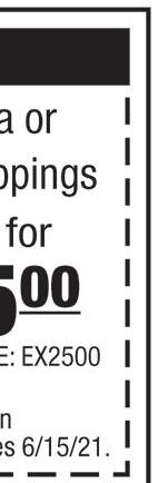 540 Chestnut Commons Dr., Elyria 440-365-0464 * Inside Chestnut Commons Shopping Plaza 506 Middle Avenue, Elyria 440-323-9710 * Across from Elyria High School $4.75 Any 7” Sandwich FAMILY PACKS +tax 7” - $28 10” - $34 4 Sandwiches 4 Reg. Potato Waffers® *2- Liter Pepsi® +tax * (May substitute 4 - 22oz. Pepsi) 2 - 7” Sandwiches & 2 reg. Potato Waffers® $6.75 Any 10” Sandwich $6.75 +tax Any 7” MEAL $6.75 Any 7” MEAL +tax Extra for BTE. Only valid at 540 Chestnut Commons Dr & 506 Middle Ave. Not valid with any other o ers or online ordering. O er expires 5/31/21. $12.50 Extra for BTE. Only valid at 540 Chestnut Commons Dr & 506 Middle Ave. Not valid with any other o ers or online ordering. O er expires 5/31/21. Extra for BTE. Only valid at 540 Chestnut Commons Dr & 506 Middle Ave. Not valid with any other o ers or online ordering. O er expires 5/31/21. Extra for BTE. Only valid at 540 Chestnut Commons Dr & 506 Middle Ave. Not valid with any other o ers or online ordering. O er expires 5/31/21. Extra for BTE. Only valid at 540 Chestnut Commons Dr & 506 Middle Ave. Not valid with any other o ers or online ordering. O er expires 5/31/21. Extra for BTE. Only valid at 540 Chestnut Commons Dr & 506 Middle Ave. Not valid with any other o ers or online ordering. O er expires 5/31/21.