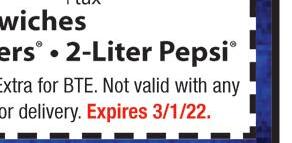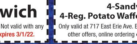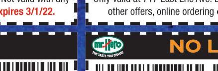 MEMBERSHIPS STARTING AT: $2999Per Month Restrictions May apply. Not valid with any other offers. Expires 2/28/22 3 SPRAY TANS $5999 Restrictions May apply. Not valid with any other offers. Expires 2/28/22 5 TANS ANY LEVEL BED NEW CUSTOMERS ONLY $1999 Restrictions May apply. Not valid with any other offers. Expires 2/28/22 Multiple levels of Tanning 2259 Kresge Drive • Amherst • 440-884-4TAN neonbeachtan.com AVON LAKE • AMHERST • CLEVELAND • ROCKY RIVER • MIDDLEBURG HEIGHTS Want a FREE TAN? • Text “neon” to 411669 LORAIN 4310 N. Leavitt Rd. 440.444.1041 FAIRLAWN 3750 West Market St. 330.208.2664 TWINSBURG 10735 Ravenna Rd. 330.998.6586 MEDINA 941 N. Court St. 330.952.0878 D L V Y O L ORD R G TEAKSA DHOAG S.CO DELIVERY ONLINE ORDERING STEAKSANDHOAGIES.COM FAMILY FEAST FRI-SUN SPECIAL ANYTIME SPECIAL $10 1 Large Steak Sandwich 1 Any Side 1 Fountain Drink 4 Large Cheesesteaks or Hoagies 4 Fresh Cut Fries 4 Fountain Drinks $35 (Savings of $15) Valid only with coupon. Not valid with any other offers, coupons or promotions. Valid at any location. Expires 3/5/22 Valid only with coupon. Not valid with any other offers, coupons or promotions. Valid at any location. Expires 3/5/22 Valid only with coupon. Not valid with any other offers, coupons or promotions. Valid at any location. Expires 3/5/22 FREE Chicken Philly Sandwich with purchase of One Steak Combo Meal