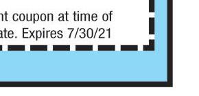 SHOP LOCALLY $$$ SAVE LOCALLY™ • VISIT www.TownMoneySaver.com FOR MORE COUPON SAVINGS! Largest Stocking Dealer in Lake, Geauga & Ashtabula Counties • M-FRI: 8-5 • SAT: 8-2 • SUN: CLOSED CUSTOM MADE AREA RUGS! LET US MAKE YOUR ROOM UNIQUE AS YOU WITH A BEAUTIFUL CUSTOM MADE RUG! 4520 Beidler Rd • Willoughby 440-953-3567 DIRECT FROM MILL... DEEP DISCOUNTS ON CARPET, VINYL LAMIATE, WOOD & TILE! THREE-ROOM SPECIAL $749 Plush Carpeting • 5 to Choose From Valid for 3 Rooms up to 144 sq.ft. each CARPET PADDING INSTALLATION CARPET & FLOORING MILL OUTLET WITH COUPON. NOT VALID WITH OTHER OFFERS. EXPIRES 7/29/21 $3399/per yard (3.78 per sq. ft.) 75 oz. MOHAWK PATRIOT Everstrand Continuum STAIN, SOIL & PET URINE RESISTANCE Anti-Static 12 Colors! 70 oz. SILKY SOFT CARPET SEVEN WONDERFUL COLORS! $3699/per yard (4.11 per sq. ft.) Price Includes: Carpet, 8lb. Pad & Professional Installation AVAILABLE FOR IMMEDIATE INSTALLATION! CARPET & FLOORING MILL OUTLET WITH COUPON. NOT VALID WITH OTHER OFFERS. EXPIRES 7/29/21 Price Includes: Carpet, 8lb. Pad & Professional Installation AVAILABLE FOR IMMEDIATE INSTALLATION! CARPET & FLOORING MILL OUTLET WITH COUPON. NOT VALID WITH OTHER OFFERS. EXPIRES 7/29/21 CLICK LVT VINYL PLANK $2.19/sq. ft. Starting at CARPET & FLOORING MILL OUTLET WITH COUPON. NOT VALID WITH OTHER OFFERS. EXPIRES 7/29/21 MANY PATTERNS IN STOCK! ABSOLUTE BEST PRICE ON COREtec! ALL IN-STOCK! COREtec One..................$4.10sq.ft. COREtec Plus..................$4.25sq.ft. COREtec Plus XL............$5.55sq.ft. COREtec Plus HD............$5.55sq.ft. COREtec Plus Design...$5.55sq.ft. COREtec Plus XLE.........$5.59sq.ft. CARPET & FLOORING MILL OUTLET WITH COUPON. NOT VALID WITH OTHER OFFERS. EXPIRES 7/29/21 WWWWWWWWWWWW YOU COULD HAVE NEW FLOORS! WE GIVE THE BEST PRICE ON LUXURY VINYL TILE CARPET & FLOORING MILL OUTLET WITH COUPON. NOT VALID WITH OTHER OFFERS. EXPIRES 7/29/21 IN-STOCK & READY FOR IMMEDIATE INSTALLATION! 14 COLORS TO CHOOSE FROM Our MOST Popular Carpet! $1999/per yard Price includes: Carpet, 8lb. Moisture Barrier Pad & Professional Installation WWWWWWWWWWWW 7488 Mentor Avenue Mentor • 440-946-3995 4839 Robinhood Dr. Willoughby • 440-946-9393 Mon-Sat: 10:30am - 9pm / Sunday 11am - 8pm Mon-Thur: 10:30am-9pm / Fri & Sat: 10:30am-10pm / Sunday 11am - 8pm FAMILY PACK NO LIMIT! NO LIMIT! NO LIMIT! Sunday Only! Extra for BTE. Valid only at 7488 Mentor Ave. & 4839 Robinhood Dr. Not valid with any other offers, online ordering or delivery. EXPIRES 7-29-21 Any 10” Sandwich $4.95 Any 7” Sandwich $19 Any Four 7” Sandwiches $6.95 4- Sandwiches 4- Reg. Potato Waffers® 2- Liter of Pepsi® 7” .......$29.99 +tax 10” .....$33.99 +tax NO LIMIT! NO LIMIT! NO LIMIT! Extra for BTE. Valid only at 7488 Mentor Ave. & 4839 Robinhood Dr. Not valid with any other offers, online ordering or delivery. EXPIRES 7-29-21 Extra for BTE. Valid only at 7488 Mentor Ave. & 4839 Robinhood Dr. Not valid with any other offers, online ordering or delivery. EXPIRES 7-29-21 Extra for BTE. Valid only at 7488 Mentor Ave. & 4839 Robinhood Dr. Not valid with any other offers, online ordering or delivery. EXPIRES 7-29-21 Extra for BTE. Valid only at 7488 Mentor Ave. & 4839 Robinhood Dr. Not valid with any other offers, online ordering or delivery. EXPIRES 7-29-21 NO LIMIT! Extra for BTE. Valid only at 7488 Mentor Ave. & 4839 Robinhood Dr. Not valid with any other offers, online ordering or delivery. EXPIRES 7-29-21 7” Romanburger® OR 7” Hot Buttered Cheesesteak™ $4.50 WITH THE PURCHASE OF ANY 14” SANDWICH AT REGULAR MENU PRICE FREE 7” SANDWICH