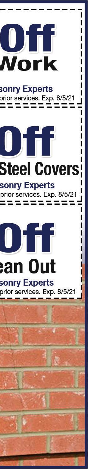 SHOP LOCALLY $$$ SAVE LOCALLY™ • VISIT www.TownMoneySaver.com FOR MORE COUPON SAVINGS! MAKING IMPRESSIONS THAT LAST! FAMILY OWNED & OPERATED! NO MIDDLE MAN! • Wood, Metal & Vinyl Fences • Decks, Concrete & Waterproofing • Additions & Garages We do... CHAMPION FENCE & CONSTRUCTION 440-488-7445 Call... • Free Estimates • Senior Discounts • Locally Owned FREE 3 FT WALKGATE with Purchase of $1500 or more. CHAMPION FENCE & CONSTRUCTION • 440-488-7445 With TMS Coupon. Can not be combined with any other offer or discount. Expires 7-29-21 $250 OFF with Purchase of $1500 or more. CHAMPION FENCE & CONSTRUCTION • 440-488-7445 With TMS Coupon. Can not be combined with any other offer or discount. Expires 7-29-21