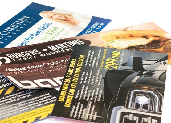 Price includes graphic design, printing, UV coating, and mailing via USPS. Make an impact with direct-mail postcards. Contact Kim. 440.554.1872 kimmahall@townmoneysaver.com 4 SIZE OPTIONS Several targeting options BASIC – Mail to every address* SMART – Mail based on demographics EXACT – Mail to your own address list *Mail to an entire TMS market for the best value – limited availability. AS LOW AS 20¢ PER ADDRESS*