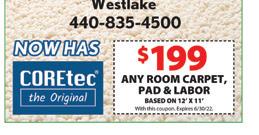 gutterguard1.com 440-366-0688 INSTALLS OVER EXISTING GUTTERS Always On Time, Friendly and Professional BBB ACCREDITED BUSINESS MADE IN OHIO FREE ESTIMATES•SENIOR DISCOUNTS•VETERAN DISCOUNTS $300 OFF Your Order(Minimumfootage required) Offer expires6-16-22 •Smooth, sloped and self-shedding profile works great for maple spinners, pine needles, roof grit and other small leaves. •Lifetime Performance Warranty •NOT a screen or filter that can clog •Installation Includes: - Gutter & Downspout Cleaning - Resealing seams & Tightening - Proper slope alignment •Proven to handle heavy rains and 110mph winds. •Patented“Bird Guard System”and comes in 14 colors. Heat Available For Open Gutters & Most Existing Gutter Covers. Shop Local And See The Difference Made in USA Serving Northeast Ohio Since 1998 AL ! L ed S l c o re fo en e s B C ’t l o n g o ! D GUTTER HEATING AVAILABLE FOR ICE DAM PROTECTION Pat’s Cleaners 28210 Lorain Road North Olmsted (Corner Of Lorain & West Park Dr.) (440) 777-0011 27339 Detroit Rd. Westlake (Corner Of Detroit & Dover) (440) 835-4820 34297 Center Ridge Rd. North Ridgeville (Rini’s Plaza) (440) 327-1013 35925 Detroit Rd. Avon (Near Marc’s) (440) 937-5757 Owner Operated Since 1964 •Wedding Gown Cleaned & Preserved SAVE On 100% Green Eco-Friendly Dry Cleaning 89$1 89$1 Men’s Business Shirts (On Hangers) Men’s Business Shirts (On Hangers) Some Restrictions apply. Expires6/16/22 Some Restrictions apply. Expires6/16/22 % OFF 25 % OFF 25 % OFF 25 % OFF 25 All Dry Cleaning All Dry Cleaning (Not valid on Wedding Dresses, Leather Goods or HouseholdItems) (Not valid on Wedding Dresses, Leather Goods or Household Items) No limit. Present coupon with incoming order. Not valid with any other offer. Expires6/16/22 No limit. Present coupon with incoming order. Not valid with any other offer. Expires6/16/22 Dry Cleaning of Household Items, Bedspreads & Drapes Dry Cleaning of Household Items, Bedspreads & Drapes (Not Valid On In Home Service) No limit. Present coupon with incoming order. Not valid with any other offer. Expires6/16/22 (Not Valid On In Home Service) No limit. Present coupon with incoming order. Not valid with any other offer. Expires6/16/22 WL WL WL WL WL WL •Leather Cleaning •Alterations Available Westlake Open Monday-Fridayam-6pm & Saturdayam-pm 8 93 SALES • SERVICE • INSTALLATION Anderson Heating & Cooling “Providing Healthy Indoor Comfort” Licensed, Bonded, & Insured State License # 36109 Financing Available An Efficient Running System Saves Money! ASK ABOUT FreeonEstimates New Equipment Air Conditioning & Heating $50 OFF Air Purifier Call for Price Kills Mold, Bacteria & Viruses, Reduces Allergens, Odors & Smoke. Maintenance Free, Self Cleaning. Precision Air Conditioning Tune-Up $89.00 Anderson Heating & Cooling • Tel: (440) 221-7978 “PROVIDING HEALTHY INDOOR COMFORT” With Coupon. Not valid with other discounts. Expires 6/15/22 (440) 221-7978 www.andersonheat.net