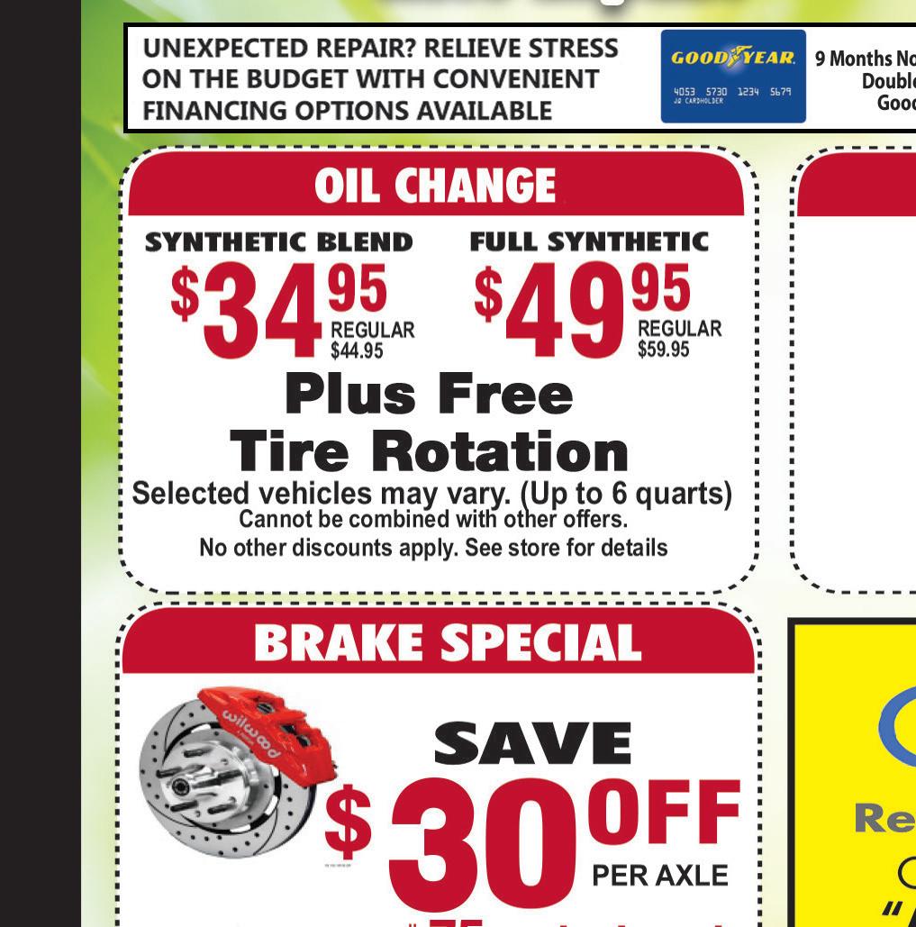 Expires 4-30-22 Expires 4-30-22 Expires 4-30-22 Expires 4-30-22 Expires 4-30-22 Expires 4-30-22 Expires 4-30-22 MACEDONIA 330-468-0521 854 East Aurora Rd | Macedonia ZANESVILLE 740-452-7512 1800 East Pike | COSHOCTON 740-622-7993 110 East Pine St | Coshocton COOLING SERVICE $8995 Cooling System Service PLUS FLUID www.citytirepros.com Most vehicles. May not be combined with any other offer. Most vehicles. May not be combined with any other offer. No other discounts apply. See store for details Expires 4-30-22 OIL CHANGE SPECIAL FREE OIL CHANGE Up to 5 Quarts With a Purchase of 4 Tires and Alignment Minimum purchase of $450 before taxes and fees. Most vehicles. May not be combined with any other offer.