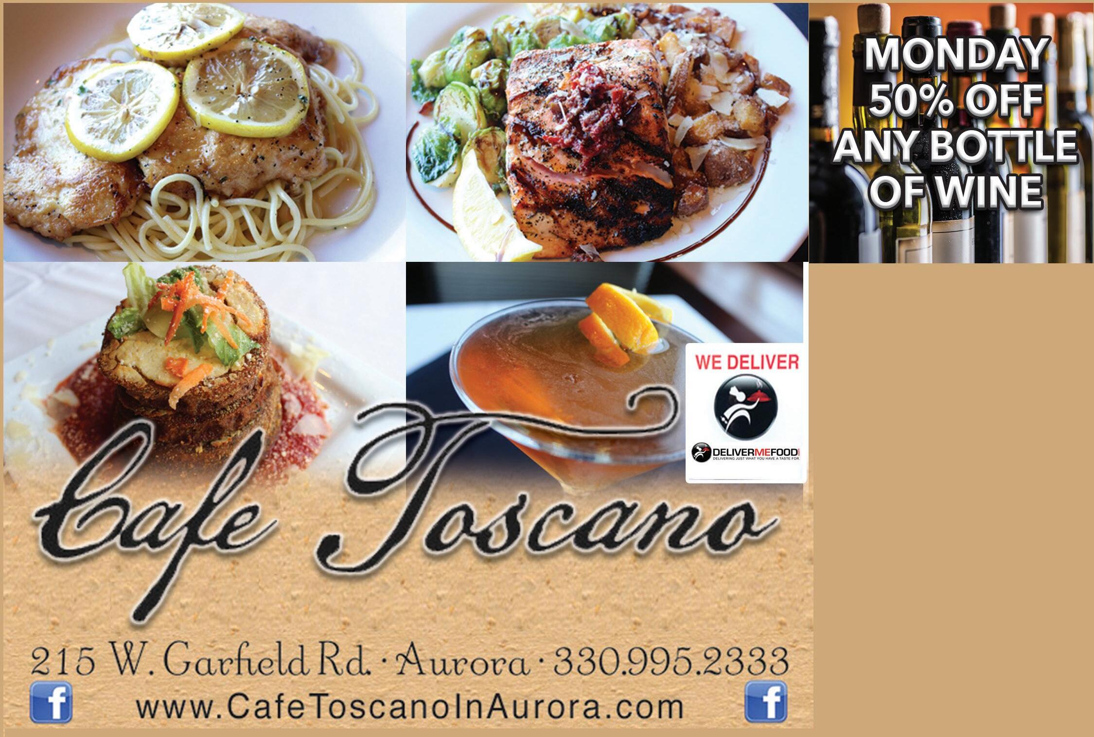 15% off AnyCarryOut Order CAFE TOSCANO • 330-995-2333 215 W. Garfield Rd. • Aurora Expires 5/20/22. Valid Mon. through Thurs. Valid with coupon. Cannot combine coupons. TMS $10 off AnyDinner forTwo DINE-IN ONLY CAFE TOSCANO • 330-995-2333 215 W. Garfield Rd. • Aurora Expires 5/20/22. Valid Mon. through Thurs. Valid with coupon. Cannot combine coupons. TMS MON-THURSONLY Mon-Thurs 4-8:30 • Fri & Sat 4-9:30 • Sun 4-8 Online Ordering www.delivermefood.com (Cannot be used in combination with coupon)