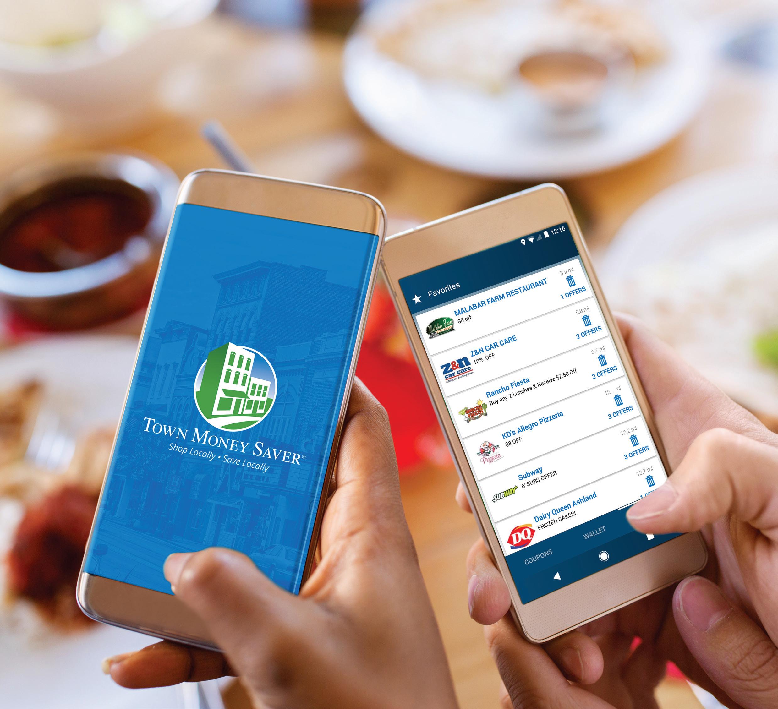 Shop locally. Save locally. Take us with you. Download the ALL NEW app today. Carry the great savings from the pages of Town Money Saver® in the palm of your hand. New look. New features. New ways to save on the go.