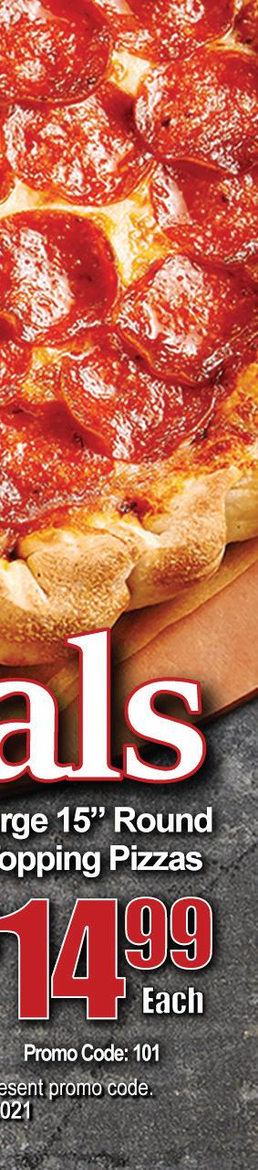 BEREA Shop locally. Save locally. Support LOCAL businesses! Aug/Sept 2021 FREE Medium Sub With The Purchase of a Medium Sub Combo. 19125 Bagley Rd • Middleburg Hts • 44130 • 440-403-9494 Shoppes on Bagley ©2013 Firehouse Subs. This offer valid with coupon at participating restaurants. Prices and participation may vary, see restaurant for details. Limit one per customer, per visit. Not valid with any other offers. Exp.9/30/21. COMBO$SUB $2 OFF A Medium Sub Combo 19125 Bagley Rd • Middleburg Hts • 44130 • 440-403-9494 Shoppes on Bagley ©2013 Firehouse Subs. This offer valid with coupon at participating restaurants. Prices and participation may vary, see restaurant for details. Limit one per customer, per visit. Not valid with any other offers. Exp. 9/30/21. $2OFF B B ® ® www.bereastorage.com BEREA SQUARE STORAGE 384 W. Bagley Rd. Berea • 440-234-5252 W 24 Hr. Video Surveillance Cameras W All Indoor & Climate Controlled W Personal Entry Codes (Access 7am-7pm) W Month-to-Month Rental W Long-Term Leasing Discounts FREE MONTH STORAGE! BEREA SQUARE INDOOR STORAGE FACILITY PAY FOR 3 MONTHS IN ADVANCE AND GET 4TH MONTH FREE! PARTIAL MONTH EXCLUDED. WITH THIS COUPON. NOT VALID WITH OTHER OFFERS. EXPIRES 9-9-2021 AUGUST SPECIAL! STORE THEIR STUFF! CLAIM BACK YOURKID’SCOLLEGE ROOM! CLEAN & SECURE! Since 2013 627 W. Bagley Rd. | 440.235.8880 Tue - TH 11AM - 9PM | F - SAT 11AM - 10PM Find us on Facebook Jojocarlonis.com ITALIAN FAMILY OWNED & OPERATED Homemade Meat & Marinara Sauce, Cheese Gnocchi, Wedding Soup, Bread & Pizza Dough. HAPPY HOUR: ALL DAY TUESDAY WEDNESDAY - SATURDAY 3pm - 6pm Only one coupon per customer. May not be combined with other o ers. Expires 9/15/21 Only one coupon per customer. May not be combined with other o ers. Expires 9/15/21 Only one coupon per customer. May not be combined with other o ers. Expires 9/15/21 PatioNow Open! CLOSED Sun & Mon $ 12 00 SAVE $4! $ 9 00 SAVE $3! $ 7 00 SAVE $2 50 ! Large 16” 12 Slice 1-Topping Pizza 16” 12 Slice 1-Topping Pizza ALL 16” 12 Slice Specialty Pizzas Medium 12” 8 Slice 1-Topping Pizza Small 9” 6 Slice 1-Topping Pizza TUESDAYS THURSDAYS $ 10 $ 5 OFF!