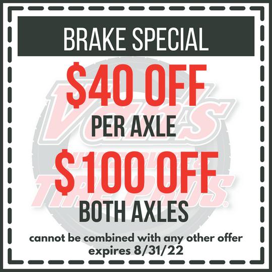 185/65R15 195/60R15 195/60R15 195/65R15 215/70R15 235/75R15 205/55R16 205/55R16 205/60R16 205/65R16 205/70R16 215/55R16 215/60R16 215/60R16 215/65R16 225/60R16 225/65R16 235/70R16 LT245/75R16 215/55R17 215/60R17 225/50R17 225/55R17 225/60R17 225/65R17 225/65R17 225/65R17 235/50R17 65K 55K 50K 55K 50K 50K 55K 50K 55K 65K 70K 55K 55K 65K 65K 55K 65K 55K 50K 55K 65K 65K 55K 55K 55K 65K 80K 40K $65 $70 $80 $70 $75 $85 $85 $95 $80 $95 $100 $95 $90 $100 $95 $90 $100 $110 $150 $95 $115 $110 $100 $95 $100 $125 $135 $100 55K 55K 50K 50K 60K 55K 50K 50K 50K 65K 55K 50K 50K 70K 50K 50K 60K 60K 60K 50K 50K 70K 50K 55K 70K 55K 60K 50K $100 $120 $140 $125 $150 $125 $110 $125 $115 $120 $130 $125 $130 $150 $150 $150 $170 $185 $175 $200 $135 $150 $185 $150 $175 $160 $170 $165 Tire Size Brand Mileage Price Each* Tire Size Mileage Price Each* *Prices are per tire and does not include installation These pric 31/22 **Plus taxes & fees FFREE REE LLOANERS! OANERS! (Subject to Availability) (Subject to Availability) CHECK US OUT T ONE OF OUR 12 CON ENIENT LOC TIONS! CHECK US OUT AT ONE OF OUR 12 CONVENIENT LOCATIONS!