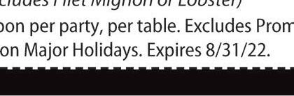 Westlake 30610 Detroit Rd. 440-835-6935 $400 OFF Any Purchase of $20 or More (Tax Not Included) Dine In Only. Valid at all locations listed. One coupon per table per party. Not valid w/any other offers or special of the day. Not valid on alcohol. Exp 8-11-22. $600 OFF Any Purchase of $30 or More (Tax Not Included) Dine In Only. Valid at all locations listed. One coupon per table per party. Not valid w/any other offers or special of the day. Not valid on alcohol. Exp 8-11-22. $1000 OFF Any Purchase of $50 or More (Tax Not Included) Dine In Only. Valid at all locations listed. One coupon per table per party. Not valid w/any other offers or special of the day. Not valid on alcohol. Exp 8-11-22. NO NO NO Additional Parking in Rear N S Crocker Bradley Detroit RT 90 FREE WIFI Serving Liquor 7 Days a Week! Dine-In/Carryout Prepared Fresh Daily ONLINE ORDERING Visit donramon-granfiestamex.com for other locations & menu Visit donramon-granfiestamex.com for other locations & menu Don Ramon Mex Westlake Gift Certificates Available Choose Any Mexican Beer (ALL DAY LONG) Happy Hour Drink Specials (excludes top shelf & homemade sangria) Choose from Lime & Strawberry Margaritas Mon.-Fri. 3:00pm-6:00pm A/C Clean & Tune-Up HUGE • 440-234-4157 With this coupon. Not valid with other offers or prior service. Expires 8-11-22. TMS just $99 BASIC ANNUAL SERVICE PLANS starting at $190/yr SAVE UP TO $500 OFF Any American Standard Air Conditioner or Furnace Unit KEEP YOUR FAMILY COMFY AND COOL THIS SUMMER! SpecialFinancing HUGE • 440-234-4157 With this coupon. Not valid with other offers or prior service. Expires 8-11-22. TMS HUGE • 440-234-4157 With this coupon. Not valid with other offers or prior service. Expires 8-11-22. TMS *See your participating independent American Standard Dealer for complete program eligibility, dates, details and restrictions. Instant rebate up to $600. All sales must be to homeowners in the United States. Void where prohibited. Valid on Qualifying Equipment only. Offer expires 08/11/2022. cb