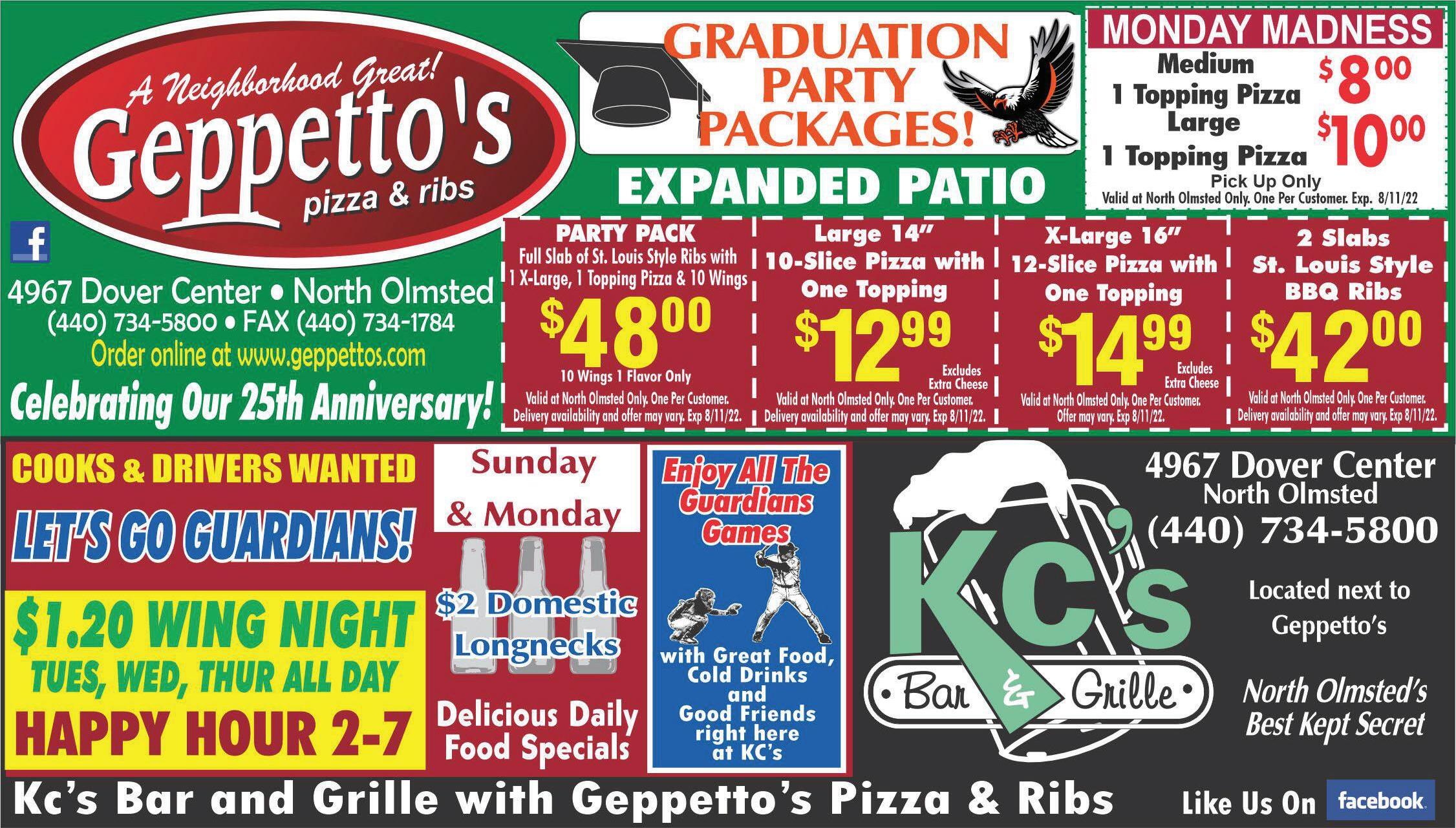 FREE Delivery In North Olmsted - DELIVERY 11am-Midnight $.00 min. order 9 DAILY LUNCH & DINNER SPECIALS $18.50 $18.50 Add’l toppings $1.50 each Excludes extra cheese Add’l toppings $.50 each 2 Excludes extra cheese Add’l toppings $1.50 each Excludes extra cheese SAVE 8 $ SAVE 8 $ 2 LARGE 2 ITEM 2 LARGE 2 ITEM With coupon. Not valid with other offers. Expires8-11-22 With coupon. Not valid with other offers. Expires8-11-22 With coupon. Not valid with other offers. Expires8-11-22 With coupon. Not valid with other offers. Expires8-11-22 With coupon. Not valid with other offers. Expires8-11-22 With coupon. Not valid with other offers. Expires8-11-22 With coupon. Not valid with other offers. Expires8-11-22 With coupon. Not valid with other offers. Expires8-11-22 With coupon. Not valid with other offers. Expires8-11-22 A’S RTURO A’S RTURO A’S RTURO A’S RTURO A’S RTURO A’S RTURO A’S RTURO A’S RTURO A’S RTURO A’S RTURO Add’l toppings $1.75 each $13.75 $14.50 X-Large 16”, 12 cut 1-Item Pizza Half Sheet 1-Item Pizza $26.95 Add’l. toppings $3.each 75 Excludes extra cheese SHEET PIZZA SPIZZAS MALL X-LARGE or HALF SHEET 2 Large 12”,8 Cut, 2 Item Pizzas 2 Large 12”,8 Cut, 2 Item Pizza FULL SHEET, 40 Cut 1 Item Pizza LUNCH SPECIALS DAILY• KITCHEN OPEN 11:00am - 12:am•45HOURS SUBJECT TO CHANGE OPEN 7 DAYS A WEEK $1.799 Large 12”8 cut 1 Item Pizza Large Salad & with Cheese PIZZA &SALAD Add’l toppings $1.50 each• Excludes extra cheese Add’l toppings $1.50 each• Excludes extra cheese Add’l toppings $1.75 each 2 Small 1 Item Pizzas $17.50 $10.25 $13.50 Large 12”, 8 cut X-Large 16”, 12 cut 1 Item Pizzas MON, TUES & WEDS ONLY MON, TUES & WEDS (equal or lesser value) Buy One Get One With Beverages Excludes Fish Fry Any Entree HALF OFF DINE IN SPECIAL 4 piece & 6 JoJo’s $.9 124 8piece&8JoJo’s$1.9 74 12piece&12JoJo’s$.9 214 16piece&16JoJo’s$2.9 54 24piece&24JoJo’s$9 33.4 w/Coleslaw ARTURO’S CHICKEN 50 pieces Chicken Only $5.99 9 Large Cheese Pizza $.95 8 BOGO HalfOffCoupon NotValid 440- 777-2420 26679 Brookpark Ext. North Olmsted FREE Wi-Fi Happy Hour 11am-7pm Also Serving Fairview, Westlake, Olmsted Falls + Domestic Bottles $2.25 11am-7pm Find Us On Fresh Dough Made Daily Fresh Veggies Add’l. toppings $3.each 75 Excludes extra cheese $33.75 FULL SHEET, 1 Item Pizza & Large Salad with Cheese SHEET &SALAD Where do you get late night pizza? Taking Pizza Orders Up to 12:45am Every Day ARTURO’S! FULL MENU AVAILABLE FOR DINE-IN, CARRY-OUT & DELIVERY Your Choice $10.50 With coupon. Not valid with other offers. Expires8-11-22 With coupon. Not valid with other offers. Expires8-11-22 A’S RTURO A’S RTURO $.825 $.99 22 $1.599 RIB DINNER Italian Sub (Hot or Cold) or Meatball Sub Half Slab Full Slab with coleslaw & fries Large Party Room ForAny Occasion GRADUATION PARTIES BANQUET CATERING ORDERS REQUIREA24 HOUR NOTICE PLEASE SUB SPECIAL FANTASY FOOTBALL DRAFTS ReneéMusat Realtor® CITYWIDE KELLERWILLIAMS® 2001 Crocker Road #200 Westlake, Ohio 44145 ReneeMusat@kw.com www.reneemusat.com 440-342-0032 Relax and let me do the selling!