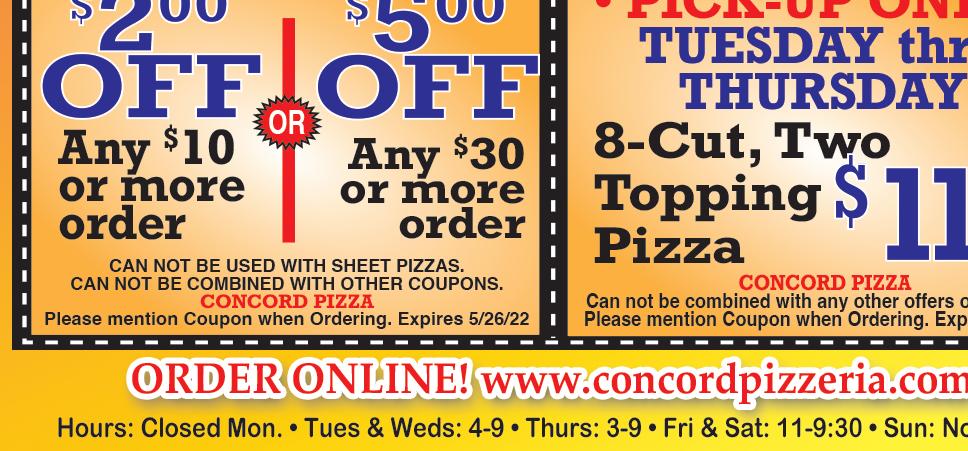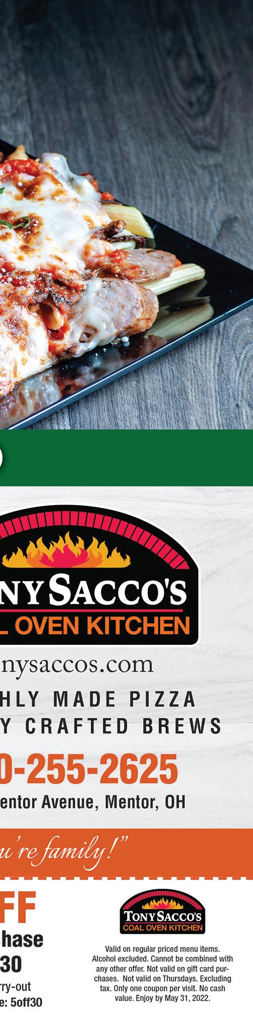 CONCORD • PAINESVILLE May 2022 Shop locally. Save locally. HOT BREAKFAST BUFFET SATURDAY & SUNDAY MORNINGS! 1945 MENTOR AVE. 440-357-8477 HOURS: Mon-Tue 6a-3p Wed-Sat 6a-8p Sunday 7a-3p OPEN FOR DINNER TILL 8PM WEDNESDAY THRU SATURDAY SATURDAY EVENINGS PRIME RIB & BBQ RIBS! FRIDAY ALL-YOU-CAN-EAT FISH FRY & HAND-BREADED LAKE PERCH NEWLY REMODELED KITCHEN & DINING ROOM...NEW MENUS! MENTOR AVENUE FAMILY RESTAURANT Cannot combine with other offers, specials or discounted items. Expires 5-26-22 $2 OFF Any Purchase of $15 or more. DINE-IN-ONLY. PLEASE PRESENT COUPON TO SERVER AT TIME OF ORDERING $3 OFF Any Purchase of $20 or more. $4 OFF Any Purchase of $30 or more. $5 OFF Any Purchase of $40 or more. MENTOR AVENUE FAMILY RESTAURANT Cannot combine with other offers, specials or discounted items. Expires 5-26-22 $2 OFF Any Purchase of $15 or more. DINE-IN-ONLY. PLEASE PRESENT COUPON TO SERVER AT TIME OF ORDERING $3 OFF Any Purchase of $20 or more. $4 OFF Any Purchase of $30 or more. $5 OFF Any Purchase of $40 or more.