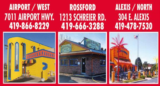 1815 SYLVANIA AVE. • TOLEDO • 419-472-2040 AIR CONDITIONING • Central Air Conditioning • Mini-Split Air Conditioning RETAIL PARTS CENTER Appliance Parts • Air Conditioners • Boilers & Furnaces • Water Heaters FILTERS & HUMIDIFIERS • WATER HEATERS We Service All Brands Of Air Conditioners, Furnaces & Boilers Are you tired of that old furnace breaking down? A new high efficient gas furnace can save up to 40% on your gas bill. Call us today for your FREE ESTIMATE! EATING • Gas Boilers • Gas & Electric Furnaces SAVE $100 Complete Cleaning & Safety Inspection On a New Furnace or A/C SAVE $200 On a New Furnace & A/C $9900 Furnace up to $30000 UTILITY REBATE One coupon per qualified purchase. Must present coupon at time of estimate. Not valid with any other offer. Exp. 12/31/21 One coupon per qualified purchase. Must present coupon at time of estimate. Not valid with any other offer. Exp. 12/31/21 One coupon per qualified purchase. Must present coupon at time of estimate. Not valid with any other offer. Exp. 12/31/21 FRIDAY & SATURDAY $ HAPPY HOUR MON-SAT •2PM-6PM & 8PM-10PM 3302 GLANZMAN RD • TOLEDO Tacos ¢ 99 ¢ 99 Bottled Domestic Beer Taco Tuesday ALL DAY! MI HACIENDA · 419-380-0411 15% OFF Dine-In or Carry-Out Excludes Alcohol • 1 Coupon Per Table TMS coupon. Not valid with any other coupons or specials. Exp. 1/1/2022 MI HACIENDA · 419-380-0411 10% OFF Dine-In • Excludes Alcohol • 1 Coupon Per Table YOUR TOTAL BILL! LUNCH SPECIAL! MON-SAT 11 TO 2:30 TMS coupon. Not valid with any other coupons or specials. Exp.1/1/2022 PARTY ROOM AVAILABLE! Not valid with a OPEN 7 DAYS A WEEK! MON-SAT 11-10 SUN-11-9 11am - 2:30pm Everyday! LUNCH BUFFET ORDER ONLINE: www.mihaciendamexican.com 419-380-0411 KIDS EAT FREE! SUNDAY DINE IN ONLY 1 FREE KIDS MEAL PER ADULT ENTREE PURCHASE DINE IN ONLY DRINK SPECIALS ALL DAY! Monday JUMBO House Margarita and Dra� Beer Specials ALL DAY! Street Tacos $2.50 Nacho Appe�zer & Small Margarita Special ALL DAY! Wednesday HOUSE, TEXAS, OR GOLDEN Thursday 1/2 PITCHERS OF MARGARITAS $ 2 HOUSE, TEXAS, OR GOLDEN PITCHER OF MARGARITAS Karaoke Every Sat. 6 pm- 9pm check on FACEBOOK for dates. Every Friday is DANCE NIGHT FRIDAY! with D J - Juanio - 10 pm - 2:00 am. BUY A $30 GIFT CARD FOR ONLY $25 Closed December 25th and January 1st. Open Christmas Eve and New Years Eve 11-8