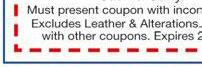 MEXICAN GRILL & BAR 5demayotoledo.com Call for Live Music Informaton at your closest Cinco de Mayo location MONDAY Special Dine in only. Cannot be combined with other offers. No coupon needed. Any Lunch $5.99 Any purchase of $40 or more $5 OFF Lunch Special $599 Any Lunch Lunch Menu Only. Fajitas Steak, Chicken or Mixed $1199 With TMS coupon. Dine in only. One coupon per person. Not valid with any other offers. Exp. 12/31/21 $450 House Margaritas 12 oz. Flavors $5.50 With TMS coupon. Dine in only. One coupon per person. Not valid with any other offers. Exp. 12/31/21 With TMS coupon. Dine in only. One coupon per person. Not valid with any other offers. Exp. 12/31/21 With TMS coupon. Dine in only. One coupon per person. Not valid with any other offers. Exp. 12/31/21 BONUS$5 Buy $25 get a BONUS$10 Buyget$50 a BONUS$20 Buy $100 get a Holiday Gift Certificates 1/2 OFF Offer good at Holland and Rossford locations only. EVERYDAY 3pm-5:30pm Drinks & Appetizers Happy Hour Serving NW Ohio & SE Michigan 419-729-9966 Carpet Cleaning 3 areas ... $115 4 areas ... $125 5 areas ... $135 6 areas ... $145 Min. charge $100. Plus tax. Residential use only. L-shaped areas or areas exceeding 250 sq. ft. are considered 2 areas. Cannot be used with other discounts. Coupon expires 12/31/21 Furniture Cleaning Couch ..... $70 Loveseat . $60 Chair ....... $45 Plus tax. Minimum charge $100. Cannot be used with other discounts. Coupon expires 12/31/21 We steam clean Ceramic Tile, Grout & Concrete ToledoCarpetAndMold.com • ToledoFloodedBasement.com A+ Ask about Reviews 5.0 FAST DRYING Professional State-of-the-Art Truck Mounted Steam Cleaning NOT HOT WATER! The Grycza Family since 1988 HOUR Flood & Mold Restoration Certified Technicians free gift with any service! FREE Deodorizer for All areas cleaned!