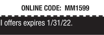 Full Tub/ Shower System Toledo’s #1 Ranked Bathroom Remodeler! Shortest Installation Time In The Industry FREE Estimates! 4519 Bennett Rd. 2 TOLEDO AREA SHOWROOMS Visit us to view our many options! 2503 N. Reynolds Rd. Just north of Bancroft www.ToledoNewBath.com $850 OFF Buy Local & Save NEW-BATH Quick Drain Walk-In Tub • Lifetime Warranty • Financing Available 419-389-9950 $1,200 OFF TOLEDO If you are calling “1-800” you are paying too much! With TMS coupon. Some restrictions apply. Exp. 1/31/22 With TMS coupon. Some restrictions apply. Exp. 1/31/22 NEW YEAR Special! 1101 Pray Blvd. Waterville, in the Kroger Plaza 567-952-2128 fax 567-952-2129 MARGARITA & FULL BAR now on Sunday! M-Th 11am-10pm • Fri & Sat 11am-10:30pm • Sun 11am-9pm MON - FRI 2-5pm 1/2 OFF Select Appetizers Tuesdays KIDS EAT FREE! BUY ONE GET ONE 1/2 OFF ENTREE Dine-in only • LB717B Excludes Alcohol & Tax La Banda Mexican With TMS coupon. Not valid with any other offer. Exp 1/31/22 $5 OFF $25 - OR$8 OFF $50 Online Order LB717A Excludes Alcohol & Tax La Banda Mexican With TMS coupon. Not valid with any other offer. Exp 1/31/22 ORDER ONLINE labandamexicangrill.com