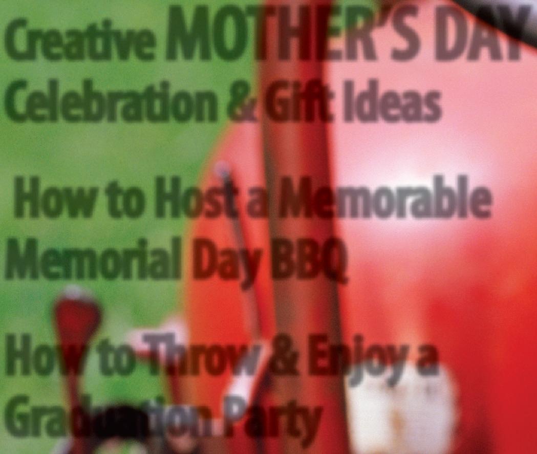 Memorial Day may be the rst big event of the season, and chances are that the grill and yard could use some attention. Make sure all the burners are clean and working properly. Clear clutter from the yard and give patio furniture a thorough cleaning. Add outdoor furniture if you need more seating. Have a spare propane tank on hand so you won’t run out of fuel. If you have a pet, be sure that the yard is cleared of waste.