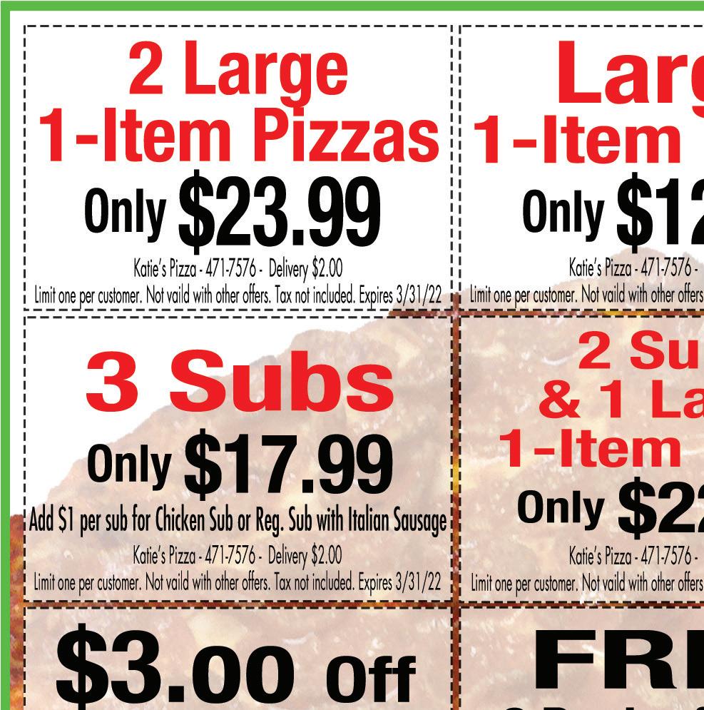 2021 FORD F-150 XL SUPER CAB 2021 FORD ESCAPE SE 2022 FORD TRANSIT CONNECT XL See website for full disclosures. Please contact dealer for details. Expires 3/2/22. MSRP $45,440 Get 2.9% APR and $1000 rebate with Ford Credit Financing MSRP $32,525 Get 1.9% APR and $2000 rebate with Ford Credit Financing MSRP $28,225 Stock # J3283 Stock # J2996 STOP BY, BUILD YOUR VEHICLE, AND LOCK IN YOUR SAVINGS UNTIL YOUR NEW FORD ARRIVES! All factory rebates to dealer. All prior sales excluded. In stock units only. Price excludes tax, title registration and $250 document fee. No security deposit required. Residency restrictions may apply. See dealer for details. Offer expires 3/2/22. 2808 Stelzer Road • Columbus, OH 43219 • 614-532-7109 Hours: Mon-Thurs 11am-10pm • Fri & Sat 11am-11pm • Sun 11am-9:30pm 50% OFF Entrée Buy One Entrée, Get One Entrée of Equal or Lesser Value Half Off (excludes Fajitas and/or Steak Items) Not valid with other offers. With coupon. Expires 3/2/22. $5 OFF Any $25 Purchase (excludes alcohol) Not valid with other offers. With coupon. Expires 3/2/22. 2P8P MW & F LUNCH BUFFET *Fresh Tableside Guacamole* ALL WEEK 11am-2pm We are taking every precaution to make your dining experience safe DINING ROOM NOW OPEN! Mexican Restaurant EL RODEO orderelrodeocolumbus.com $10 OFF Any $50 Purchase (excludes alcohol) Not valid with other offers. With coupon. Expires 3/2/22. Children’s Menu Available HAPPY HOUR SPECIALS