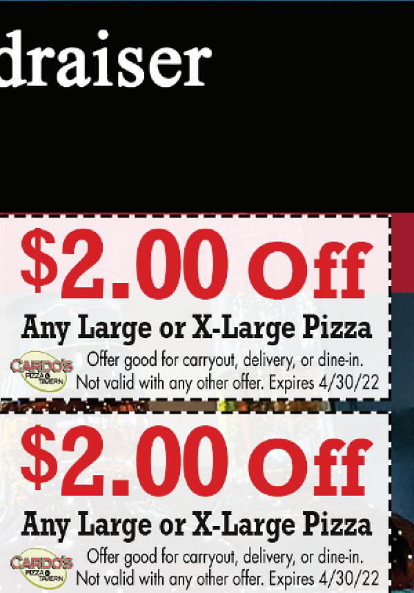 PICKERINGTON Published By Town Money Saver, Inc. Corporate O ce • PO Box 356 • Lucas, OH 44843 © 2022 TMS Franchising, Inc. All rights reserved. For advertising information, call 614-900-4256 NEXT ISSUE IN HOMES: April 28, 2022 ADVERTISING DEADLINE: April 15, 2022 POSTAL CUSTOMER PRSRT STD ECRWSS U.S. POSTAGE PAID Town Money Saver, Inc. townmoneysaver.com TRAMPOLINES 3 FOAM PITS NINJA COURSE DODGE BALL TODDLER AREA PARTY ROOMS GET OUT. GET ACTIVE. GET AIR. CLUB AIR FRI & SAT 8PM – 10PM STARTING AT $199 1075 Hill Rd N • Pickerington • 614-490-1286 Get coupons/deals online at... GetAirPickerington.com $50 OFF YOUR NEXT PARTY WHEN YOU BOOK A PARTY WITH 10 OR MORE JUMPERS With coupon. Not valid with other o ers. Not valid on holidays and school holidays. Limited to ONE per household. One time use. Valid for one party only, please. Expires 4/30/2022 $5 OFF 2 HOUR JUMP PASS (LIMIT 4 GUESTS PER COUPON) With coupon. Not valid with other o ers. Not valid on holidays and school holidays. Limited to ONE per household. One time use. Valid for one person only, please. Expires 4/30/2022 FREE HOUR BUY 1 HOUR, GET 2ND HOUR FREE (SAME PERSON/SAME DAY) With coupon. Not valid with other o ers. Not valid on holidays and school holidays. Limited to ONE per household. One time use. Valid for one person only, please. Expires 4/30/2022 FREE HOUR BUY 1 HOUR, GET 2ND HOUR FREE (SAME PERSON/SAME DAY) With coupon. Not valid with other o ers. Not valid on holidays and school holidays. Limited to ONE per household. One time use. Valid for one person only, please. Expires 4/30/2022