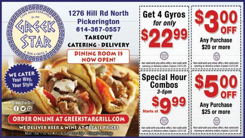 Don’t get left out in the cold. Reserve your ad space today. SCHEDULE ISSUE DEADLINE IN HOME Jan Dec 17 Dec 30 Feb Jan 14 Jan 27 Mar Feb 18 Mar 3 CALL TODAY FOR MORE INFORMATION 614.900.4256 billtownmoneysaver@gmail.com PICKERINGTON Nov-Dec 2020 Shop locally. Shop safely. Support LOCAL businesses! Pickerington_Nov20.indd 1:51 PM