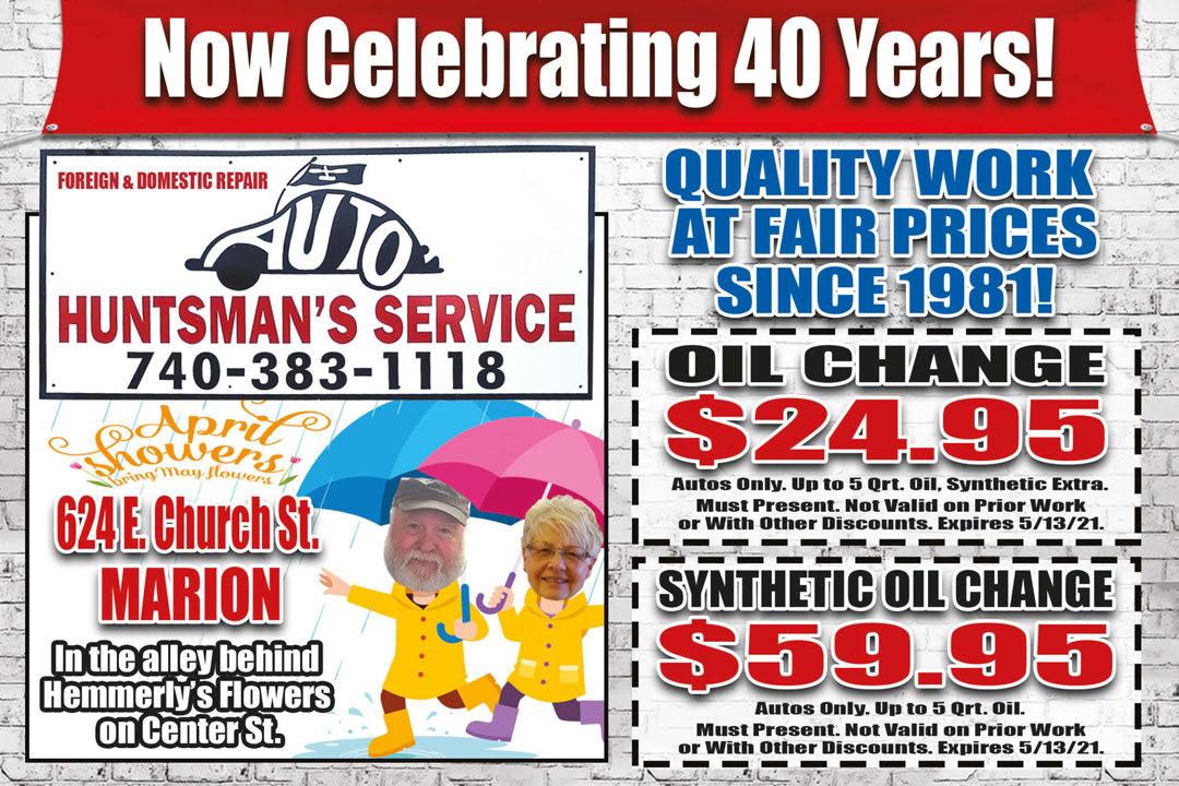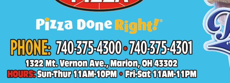 698 RICHMOND AVE. MARION, OH • 740-387-4992 NOW OPEN DAILY FOR LUNCH AT 11AM! Mon: 11am-9:30pm • Tues-Thur: 11am-10:30pm Fri & Sat: 11am-11:30pm • Sun: 4pm-9:30pm NEW OWNERS, SAME GREAT FOOD! EVERY ORDER RECEIVES A RAFFLE TICKET! drawing APRIL 30TH! 1st Place prize $50 mastercard gift card • 2nd place prize: $25 mastercard gift card 3rd place prize: $25 genova’s gift certificate $5 DAILY SPECIALS MON: 1/2 Pound of Wings TUES: Any 9” Sub WED: Pizza Roll THUR: Small Nacho FRI: Burger & Chips with a 12oz Soda SAT: Any Salad SUN: Spaghetti FREE WITH ANY ORDER OVER $20 2 LITER WITH COUPON. EXPIRES 5/13/21 IF YOU LIVE WITHIN 15 MINUTES OF GENOVA’S, WE DELIVER TO YOU! 10” CAULIFLOWER CRUST NOW AVAILABLE! 157 South State Street Marion, Ohio 43302 Mon-Fri 8am-5pm Appointments Preferred • Walk-Ins Always Welcome FREE Battery Installation With Purchase of an Interstate Battery Certain conditions apply. Not valid with any other offers. Must present at time of service. Expires 5/13/21 FREE Multi-Point Vehicle Inspection Complete Vehicle Diagnostic ONLY $24.95 + Receive 10% OFF Repair Labor Certain conditions apply. Not valid with any other offers. Must present at time of service. Expires 5/13/21 Certain conditions apply. Not valid with any other offers. Must present at time of service. Expires 5/13/21