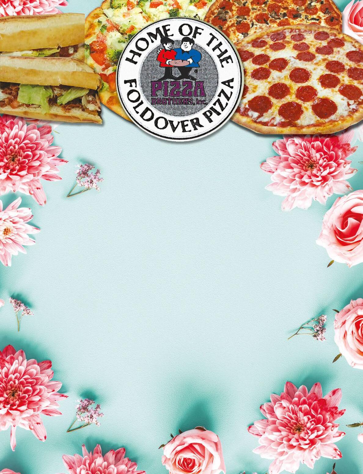 Hours: Monday-Thursday: 10:30am-1:30pm, 4:00pm-10:00pm Friday & Saturday: 11:00am-11:00pm • Sunday: 4:00pm-10:00pm PIZZA BROTHERS 617 DELAWARE AVE. 387-2121 CARRYOUT OR DELIVERY 387-2121 617 Delaware Ave. Not valid with any other offer. PICK UP OR DELIVERY. Expires 5/13/21 Foldover Family Pack 17” Foldover, Large Chef Salad, Breadsticks & 2-Liter of 7UP Not valid with any other offer. PICK UP OR DELIVERY. Expires 5/13/21 387-2121 617 Delaware Ave. 17” 3 Topping Pizza $15.50 CODE # T0301 $28.50 (Premium Foldovers Available for Additional Charge) 17” 1 Topping Pizza & 2-Liter of 7UP $15 CODE # T0303 Not valid with any other offer. PICK UP OR DELIVERY. Expires 5/13/21 Not valid with any other offer. PICK UP OR DELIVERY. Expires 5/13/21 Not valid with any other offer. PICK UP OR DELIVERY. Expires 5/13/21 Not valid with any other offer. PICK UP OR DELIVERY. Expires 5/13/21 387-2121 617 Delaware Ave. CODE # T0302 13” Foldover & 2-Liter 7UP $15.50 (Premium Foldovers Available for Additional Charge) CODE # T0304 387-2121 617 Delaware Ave. 387-2121 617 Delaware Ave. 387-2121 617 Delaware Ave.