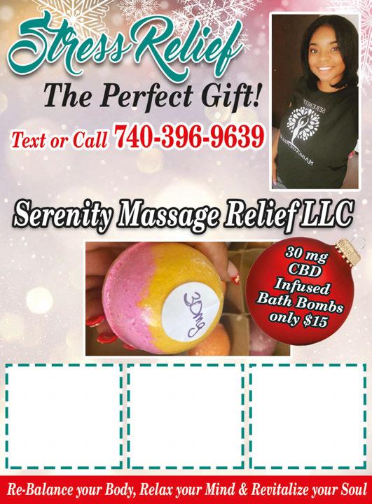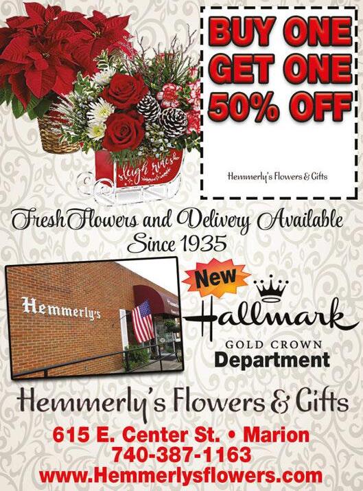 1360 Mt. Vernon Ave. 740-389-1249 Behind Red Lobster in the Marion Plaza Hours: Mon-Thur 11a-9:30p • Fri & Sat 11a-10p • Sun 11a-9p $1 OFF Any two lunches ONE COUPON PER TABLE. PRESENT COUPON. NOT VALID WITH OTHER OFFERS OR SPECIALS. EXPIRES 1/20/22. TMS DINE IN OR CARRY OUT ONE COUPON PER TABLE. PRESENT COUPON. NOT VALID WITH OTHER OFFERS OR SPECIALS. EXPIRES 1/20/22. TMS $2 OFF Any Purchase of $20 or more $3 OFF Any Purchase of $30 or more DINE IN OR CARRY OUT ONE COUPON PER TABLE. PRESENT COUPON. NOT VALID WITH OTHER OFFERS OR SPECIALS. EXPIRES 1/20/22. TMS Plan Your Holiday Party Here WALK INS WELCOME! $20 HAIRCUTS PERMS & COLOR WAXING ORGANIC SKINCARE PRODUCTS FACIALS DNA HEALING SESSIONS AVAILABLE