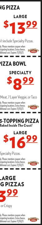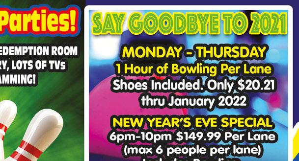 $5 Off Any Purchase of $25 or More Must present coupon. Valid on clothing items only. Do not combine. Not valid with other offers or discounts Expires 1/20/22. Open Monday - Saturday 11am-6pm • Closed Sundays SCRATCH H OFF F CARD D SALE E IS S JANUARY Y 3-8th Everyone who makes a purchase will receive a Scratch Off Card UP TO 40% OFF With coupon. Expires 1/20/22 GLOW IN THE DARK BEGINS FRIDAY 9:30PM SATURDAY 6:00PM Fall Hours Have Returned! NOW OPEN Mon-Thurs 4-10 Fri 4-Midnight Sat Noon-Midnight Sun Noon-10 GIFT CARDS AVAILABLE! Great Gifts!