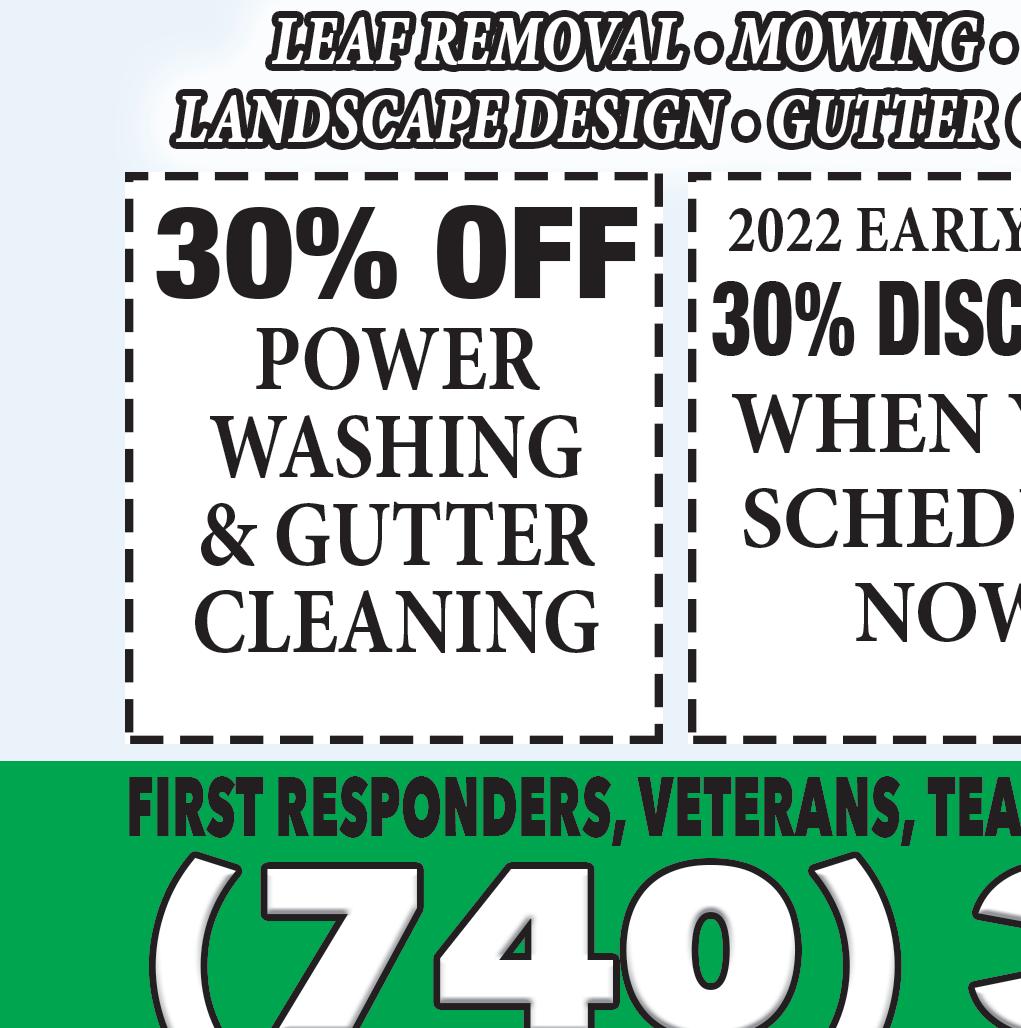 JOHN MOORE Construction jbmoore6922@gmail.com (740)262-0553 Licensed, Insured, LLC, OSHA Certified Roofing, Siding, Windows & Decks MOORE’S CONSTRUCTION Quality you can trust. SAVE UP TO $500 ON YOUR NEXT PROJECT! CALL NOW and ask how you can