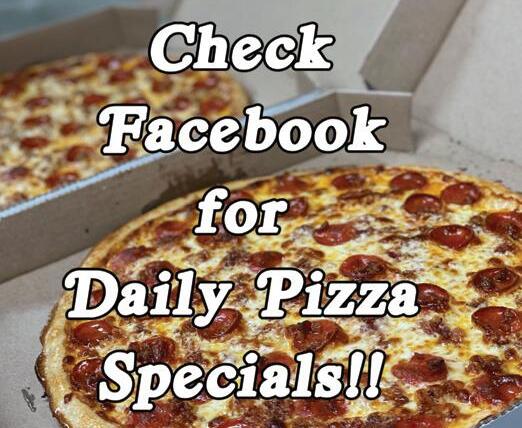 Sunday through Thursday • 8” Italian, Ham or Turkey Sub $5.49 • Large Pepperoni $6.99 • Large 3 Item Pizza $7.99 • 16” Super Sub $7.99 • Large Chef Salad $7.49 Bologna $2.99/lb. Chipped Ham $3.69/lb. Buffet Ham $3.99/lb. Cooked Ham $3.99/lb. Provolne Cheese $4.99/lb. Hot Pepper Cheese $4.99/lb. Tavern Ham $3.99/lb. WEDNESDAYS FROM 2PM - 8PM Includes a Side Salad & 2pc Garlic Bread * Dine in only. Extra salad and garlic bread are available for additional fee Hungry and In a Rush? Check Out These Convenient Drive Thru Pick Up Specials! TUESDAY PICK UP OR DINE IN SPECIAL: MEDIUM 1 ITEM PIZZA $5 Colby & Colby Jack $4.99/lb. * Additonal Topping Available for Extra Fee Super Special 10 Boneless Wings $6.99 Five Chicken Breast Strips $3.99 Six Jumbo Chicken Wings $7.99 (choice or bbq, hot or regular) Six Bread Sticks $3.00 (w/cheese or pizza sauce) 8 oz. Deep Fried Shrimp $5.99 Ten Mushrooms $3.50 Ten Onion Rings $3.50 French Fried Cauliflower $3.50 Nachos & Cheese $3.50 Cheese Fries $3.75 Cheese Plate SM $7.50 MED $14.00 LG $20.00 Jalapeno Poppers (cream cheese or cheddar) SIX $5.50 FOUR $4.50 Six Mini Corn Dogs $2.50 Fried Mozzarella Cheese Sticks FIVE $4.99 Pepperoni Cheese Sticks $3.50 Two Bosco Sticks $3.99 w/choice of Pizza or cheese dip Spring Rolls FOUR $2.59 SIX $3.29 Cheese Curds $3.75 Pickle Fries TEN $2.99 TWENTY $3.99 Breaded Clams $5.99