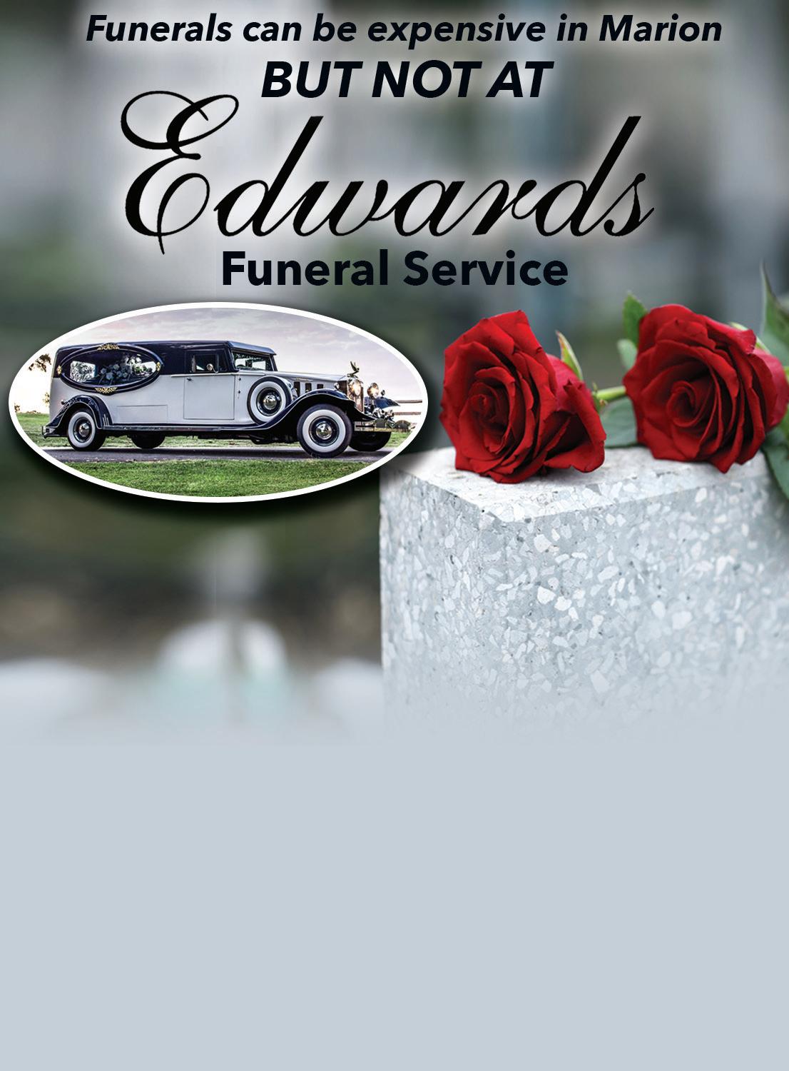 MARION January 2022 Earn 1 fuel point for every $1 spent on eligible purchases at Kroger. For more details, visit your local Kroger store or visit www.kroger.com/fuel. • TOBACCO • VAPE • SNACKS • AND MORE! Across from Huntington Bank Expires 2/17/22 COMPLETE FUNERAL $4495 (Includes all services, casket and vault, just pay the cemetery) FREE use of our New Reception & Dining room Why Pay More? Pre-Arrange Today to Lock in these Prices Forever! GUARANTEED LOWEST PRICE! (740) 387-1188 Hughes-Allen Chapel • 318 Mt. Vernon Ave, Marion
