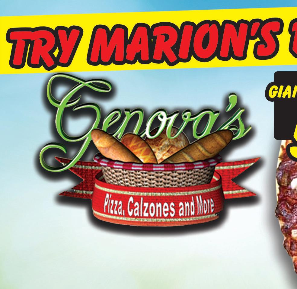 Pick up or delivery 740-387-4992 698 RICHMOND AVE. MARION, OH $2 OFF 19” Giant Super Supreme Expires 2/17/22 Our biggest pizza yet. Ten, count’em ten toppings all piled high and to perfection. Pepperoni, Sausage, Ham, Bacon, Onions, Mushrooms, Black Olives, Green Olives, Mild Pepper Rings and Cheese. ASK ABOUT OUR DESSERTS! FULL MENU ON FB SCAN HERE Expires 2/17/22 Expires 2/17/22 2 - 9” Pizza Subs $10.99 2 - 1 Topping 14” Pizzas $19.99 Gift Certificates Available Gift Cards Available!
